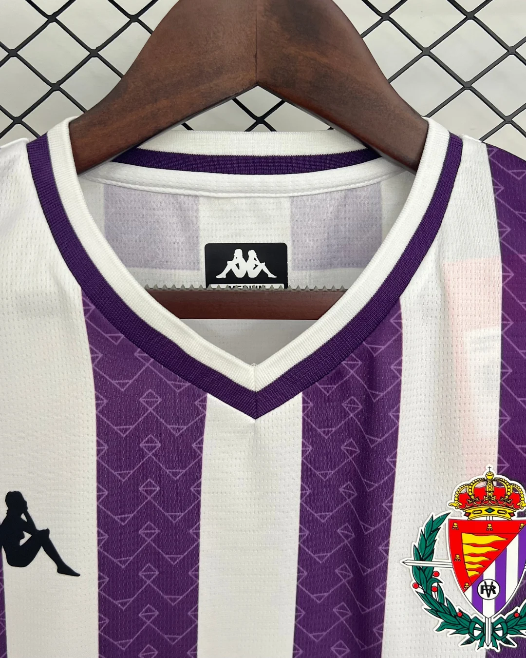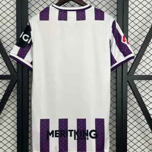 Celebrate tradition and style on the pitch with the Kappa Real Valladolid 25/26 Home Stadium Jersey, a modern reinterpretation of the club’s iconic violet and white vertical stripes. This season’s jersey features the club’s classic vertical stripes in violet and white, enriched with a subtle, repeating geometric pattern integrated into the violet stripes, adding depth and texture while honoring the club’s rich history. The design nods to the memorable 90s kits, with the Kappa logos elegantly placed along the sides for a retro throwback feel.