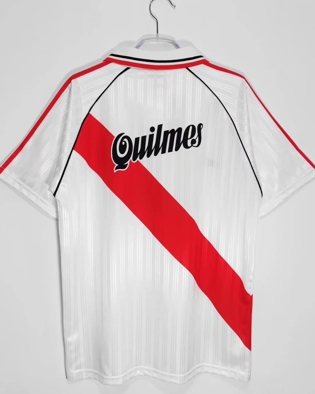 Celebrate the rich heritage of one of Argentina’s most iconic football clubs with the classic River Plate 1995/96 Home Jersey. This timeless design features a crisp white base complemented by the club’s famous red diagonal sash crossing the front, a symbol that resonates deeply with passionate fans worldwide.