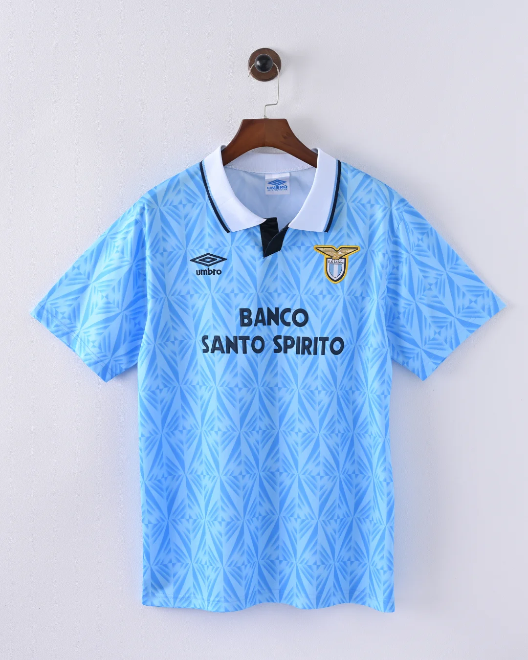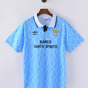 The S.S. Lazio 1991/92 Home Jersey is a vintage football shirt that embodies the tradition and elegance of Società Sportiva Lazio during the early 1990s. This jersey features the club’s iconic sky blue base with crisp white accents, reflecting Lazio’s classic “Biancocelesti” identity. It is a faithful replica of the kit worn throughout the 1991/92 Serie A season—a memorable era that saw stars like Paul Gascoigne, Rubén Sosa, and Karl-Heinz Riedle on the pitch.