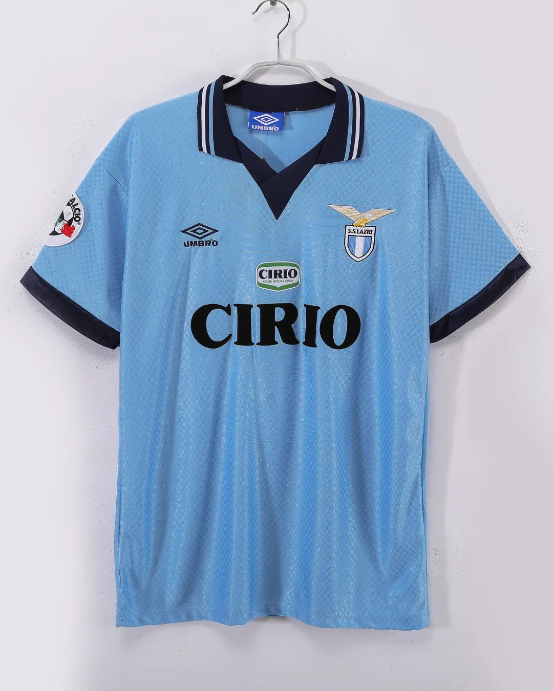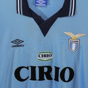 Celebrate one of the iconic eras of Lazio football with the S.S. Lazio 1996/97 Home Jersey, an authentic Umbro design that perfectly captures the classic style and spirit of the club during a memorable Serie A campaign. This stunning kit features Lazio’s signature sky blue as the primary color, accented by deep navy and crisp white trims, creating a timeless and elegant look.