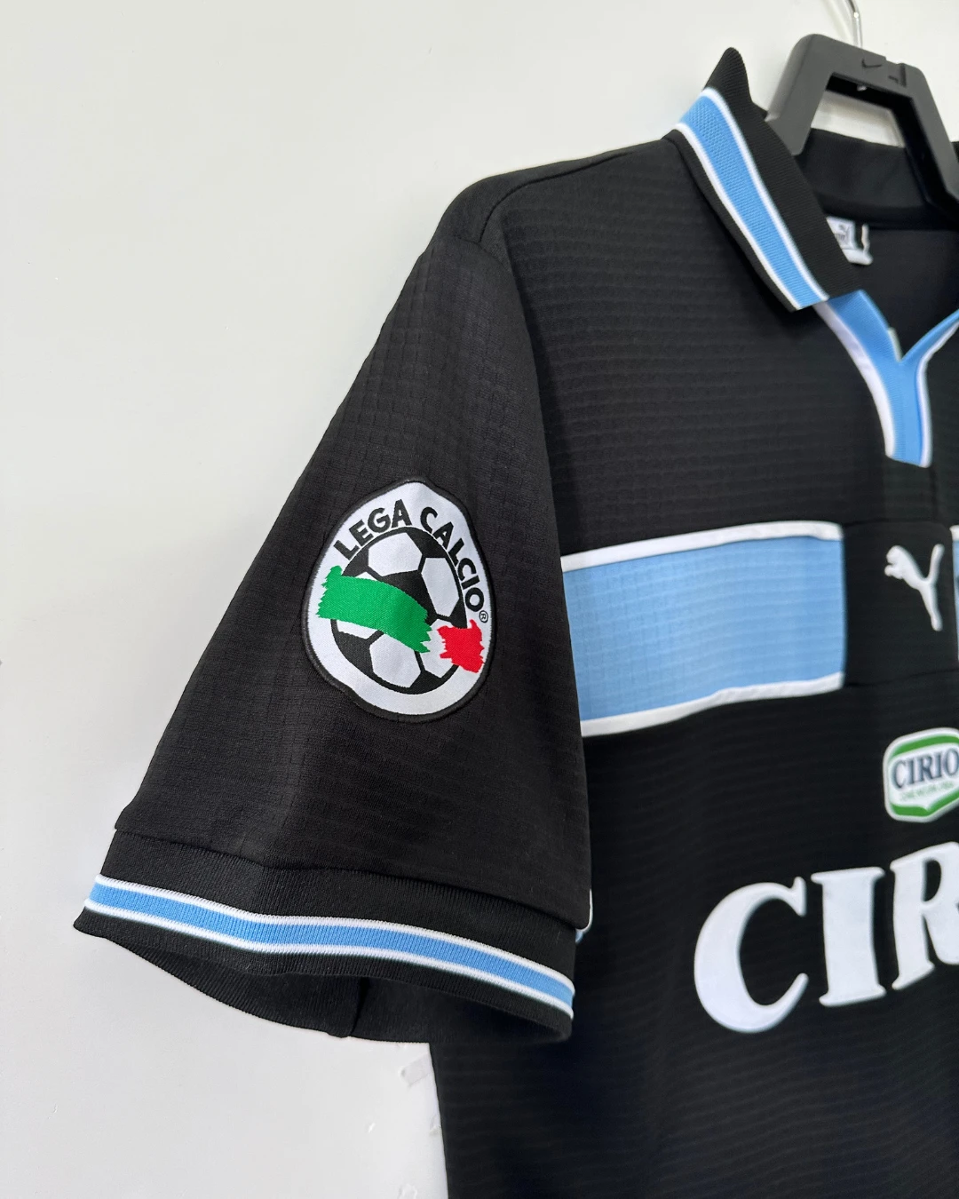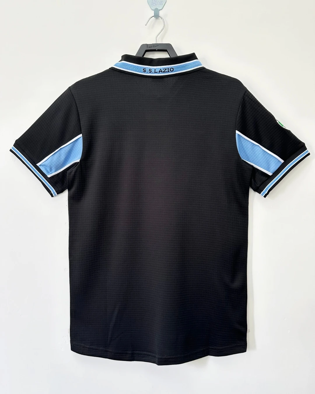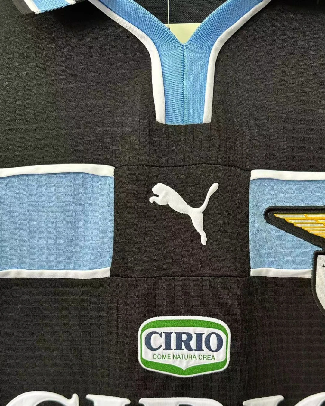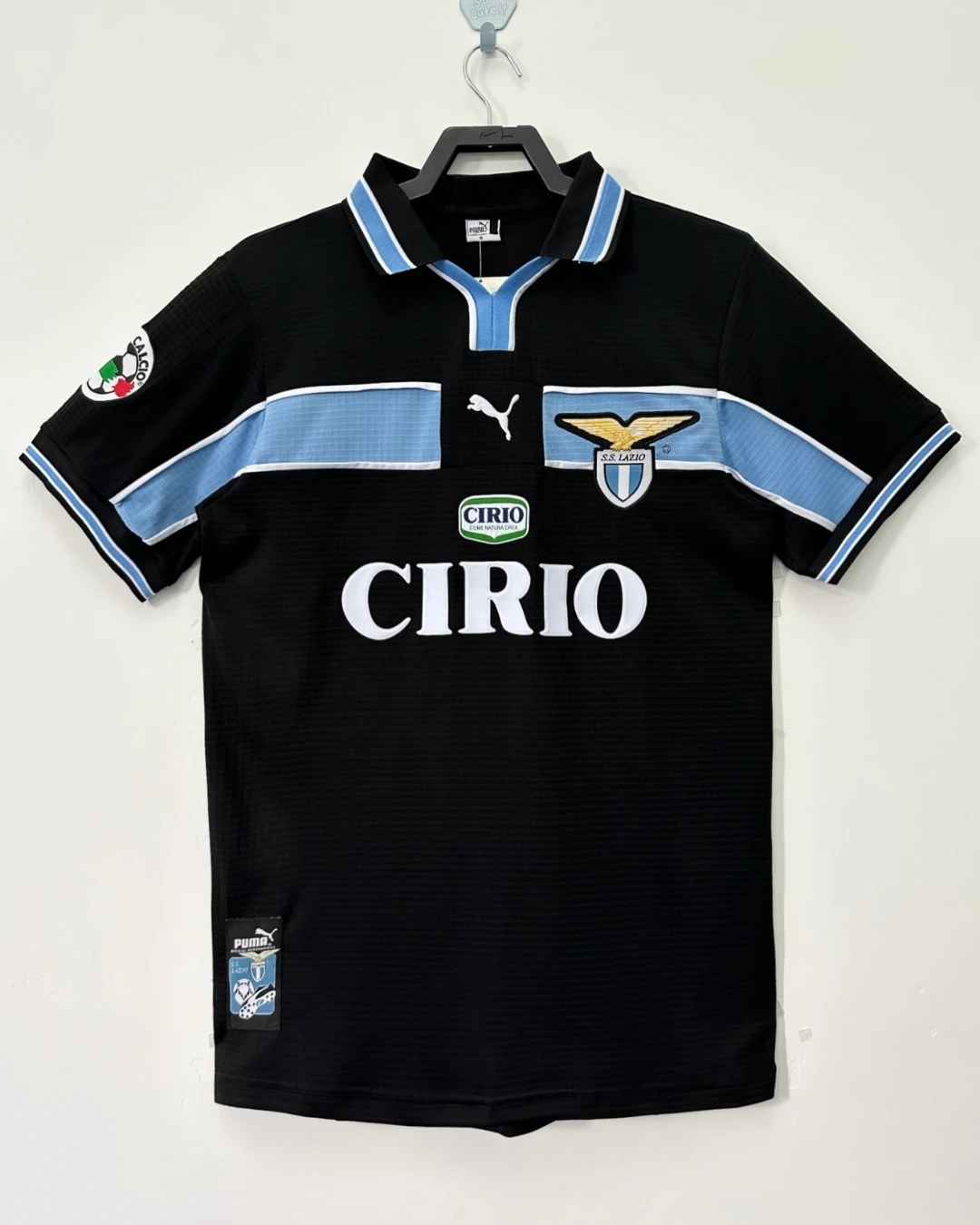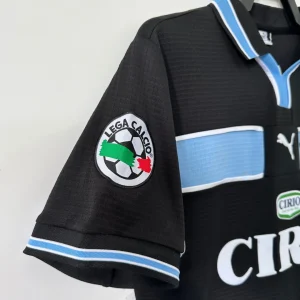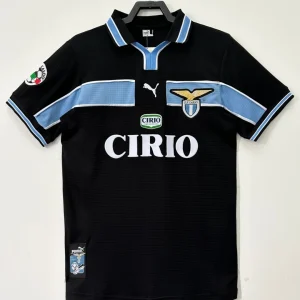 Relive Lazio’s late-90s rise with the S.S. Lazio 98/00 Third Jersey, a rare retro shirt from the club’s iconic Puma era. This black third kit stands out with light blue detailing and a clean, minimal 90s look that matches the style worn during Lazio’s push toward domestic and European success. It is closely associated with the squad of Pavel Nedvěd, Alessandro Nesta, Roberto Mancini, and Juan Sebastián Verón. The jersey reflects the look of the original 1998–2000 Lazio third design, with the club crest and sponsor styling kept in true retro fashion.