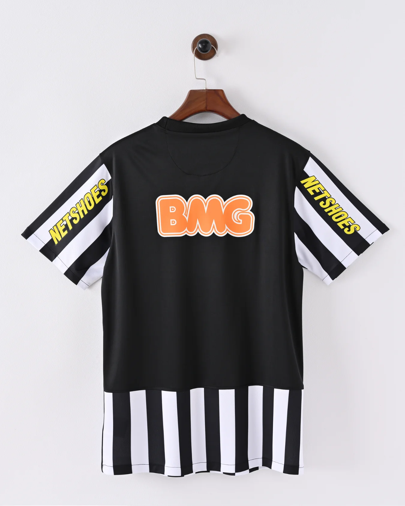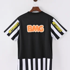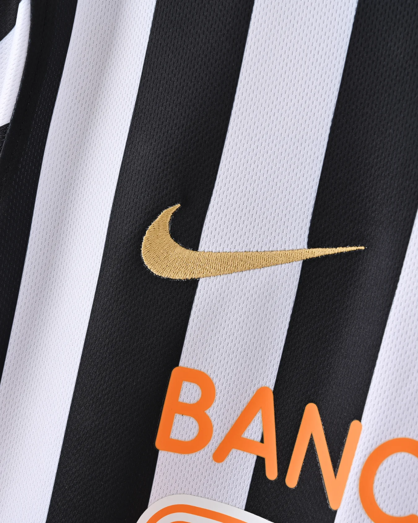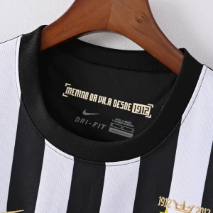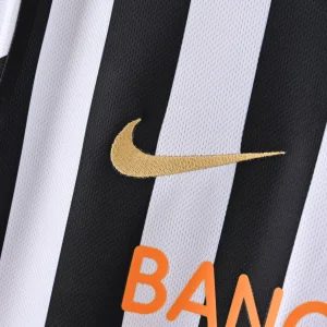 The design is a tribute to the club’s rich history, featuring the iconic black and white base gold accents that represent Santos’ undying ambition and elegance. The famous Santos FC crest, proudly embroidered on the chest, and the distinctive Nike branding add a touch of prestige to an already exceptional jersey. Whether you’re a collector or a die-hard fan, this jersey transports you back to a time when the likes of Neymar Jr. graced the field, bringing moments of brilliance that thrilled the world.
