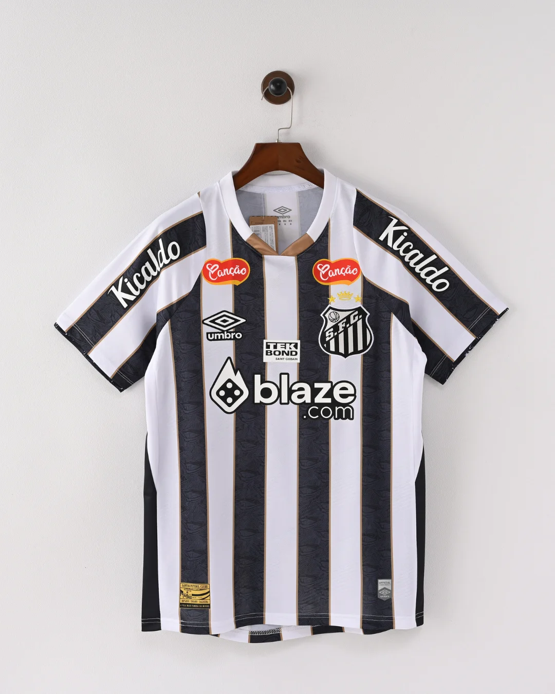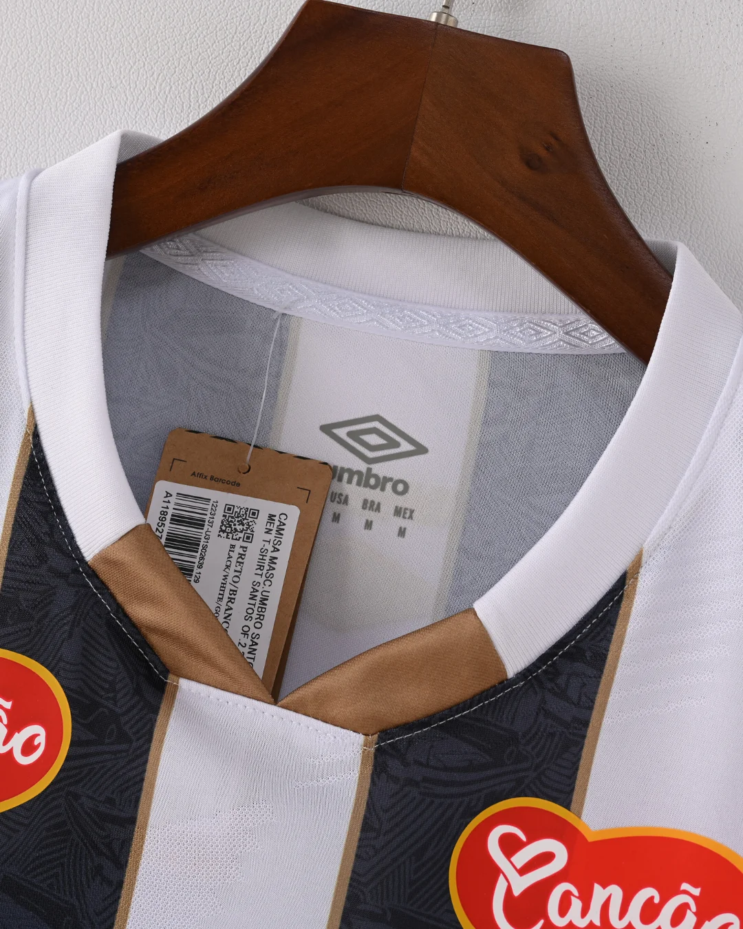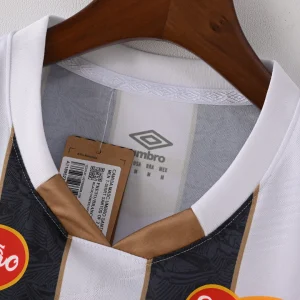 Celebrate the rich heritage of Santos FC with the sleek and stylish 2024 Away Jersey, crafted by Umbro to honor the club’s iconic traditions and modern flair. This jersey features the club’s classic black and white stripes, enhanced with subtle gold detailing as a nod to Santos’ illustrious history, including the legendary Pelé era.