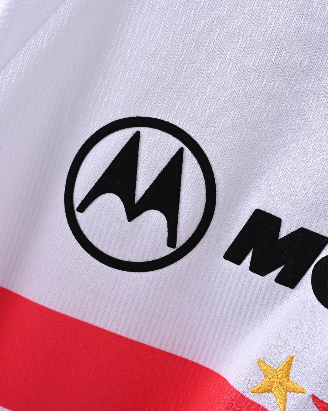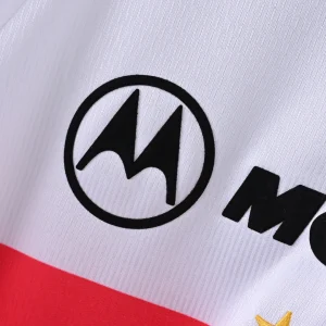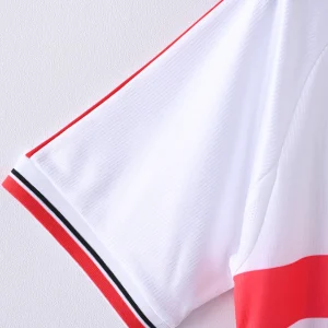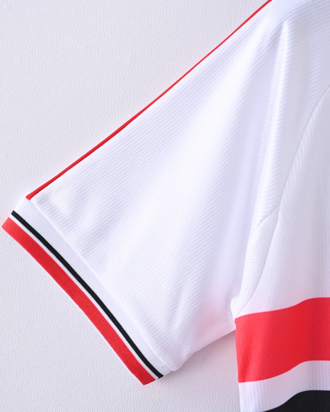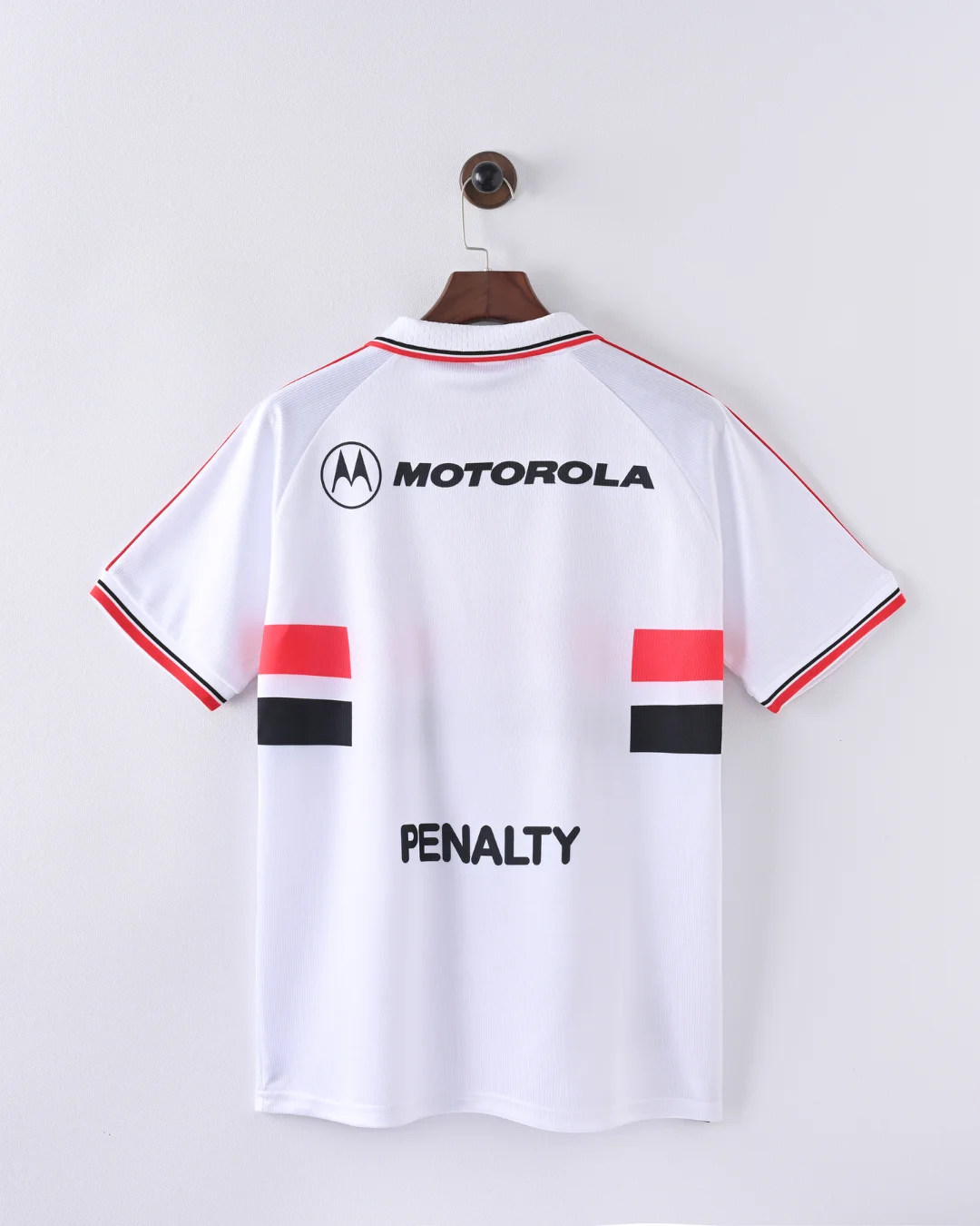 The São Paulo FC 2000 Home Jersey is a rare and iconic retro football shirt, worn during a significant period when São Paulo won the Campeonato Paulista and competed strongly in the Brazilian Serie A. Manufactured by Penalty, this classic jersey features the club’s traditional white base accented with the distinctive red, black, and white stripes that represent São Paulo’s rich heritage. A key design highlight is the elegant collar style, complemented by subtle yellow details that frame the embroidered club crest, adding a fresh contrast to the traditional colors.