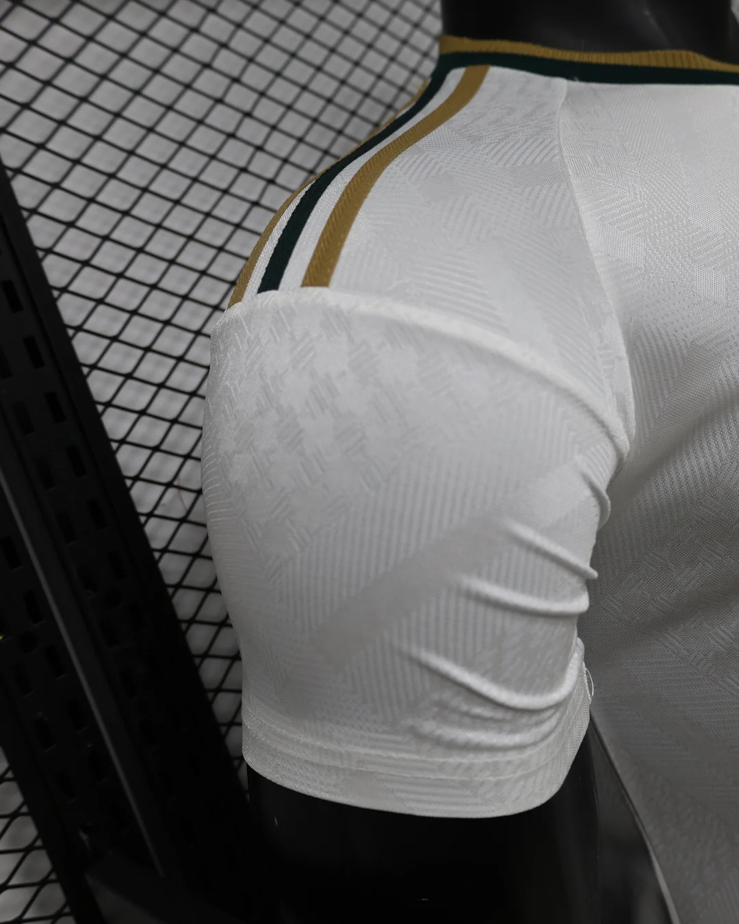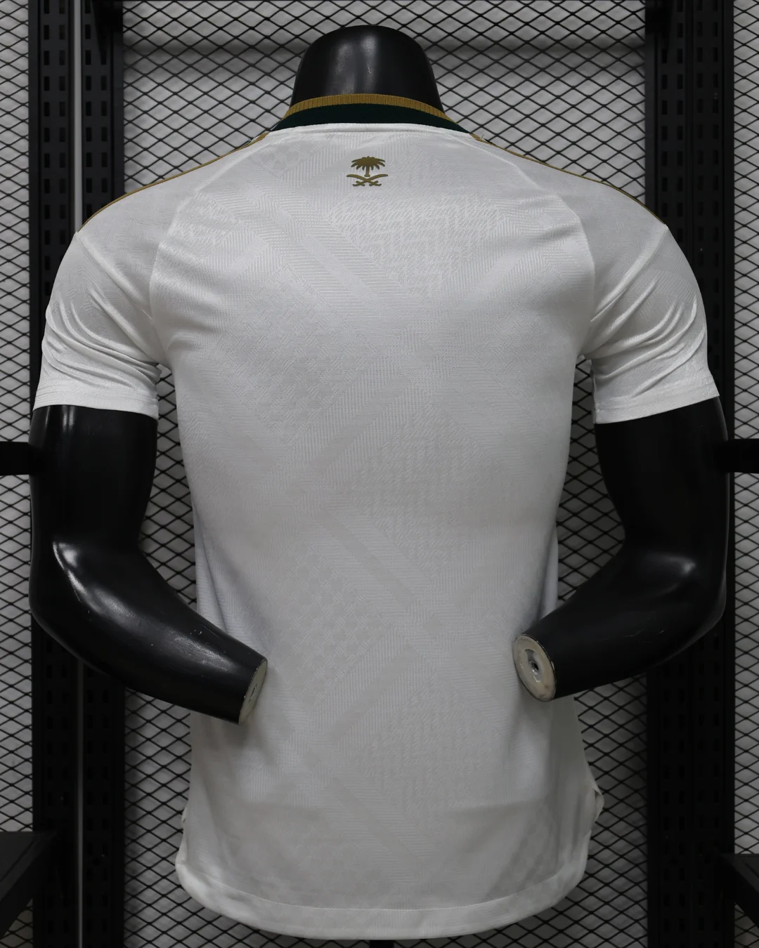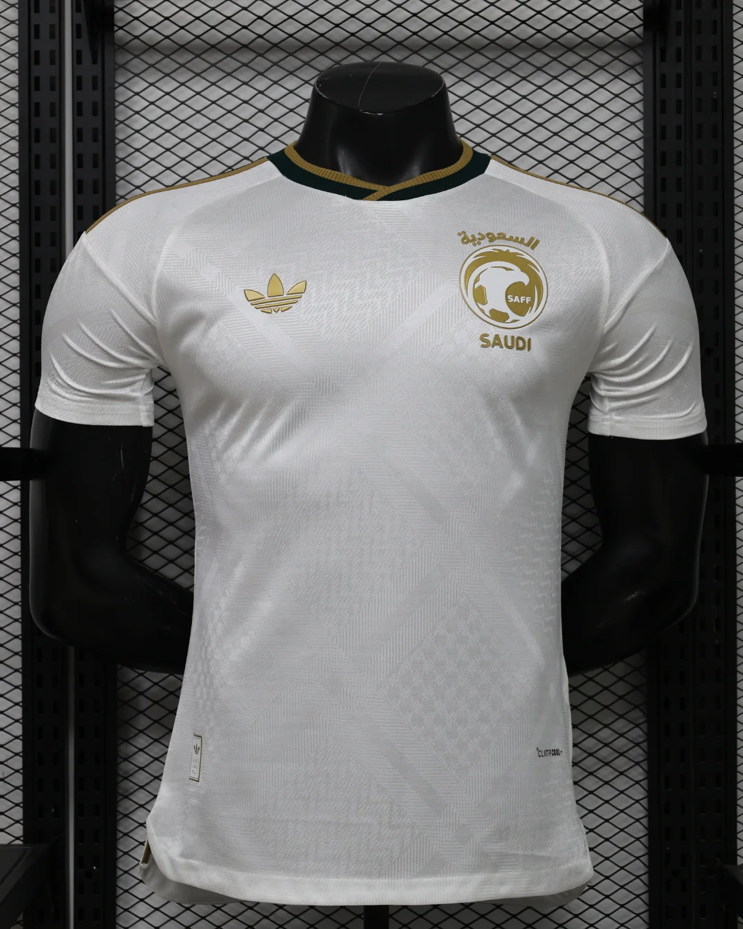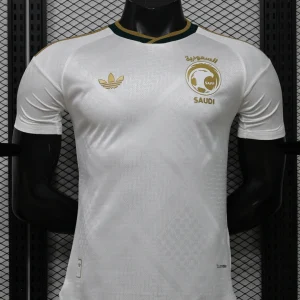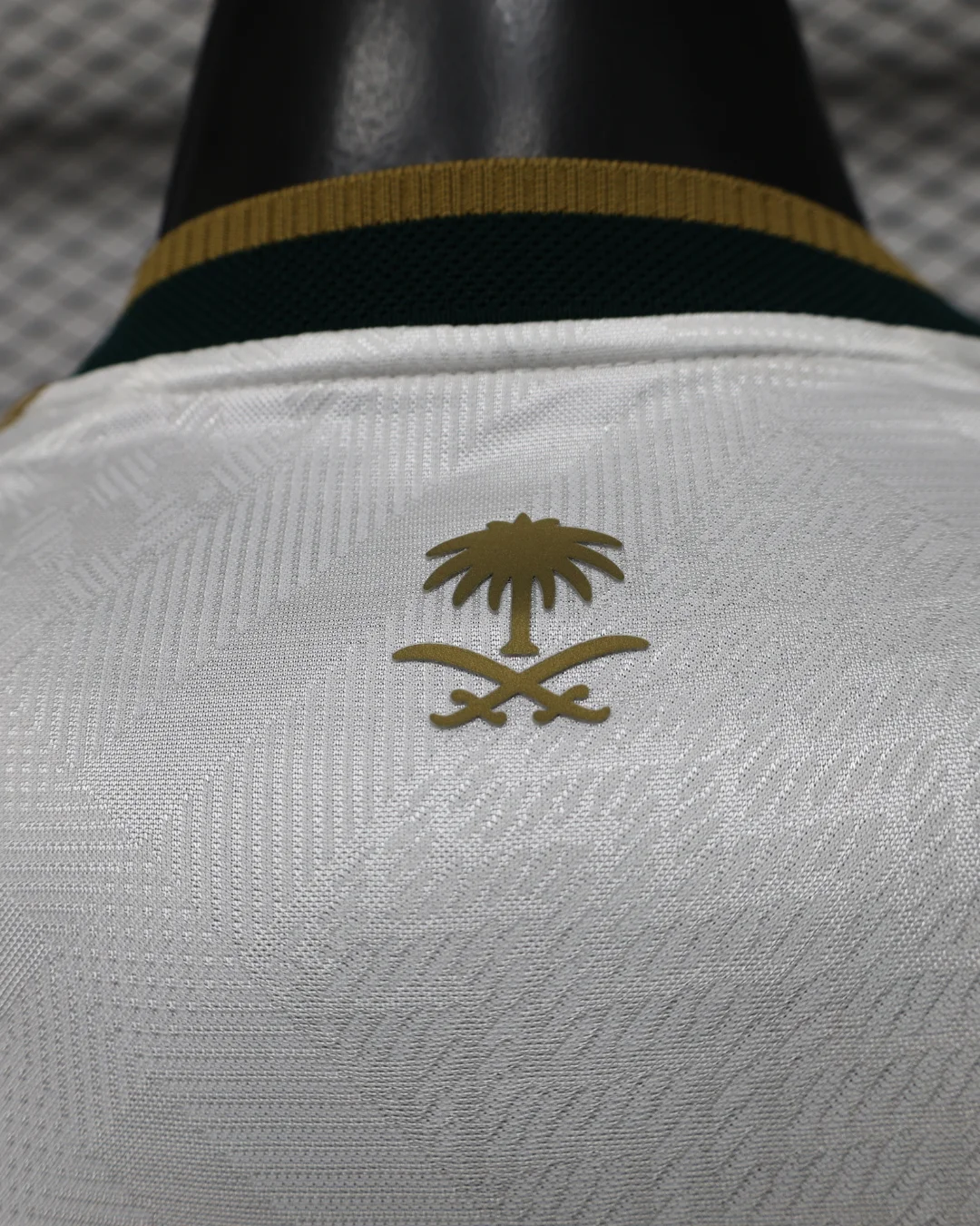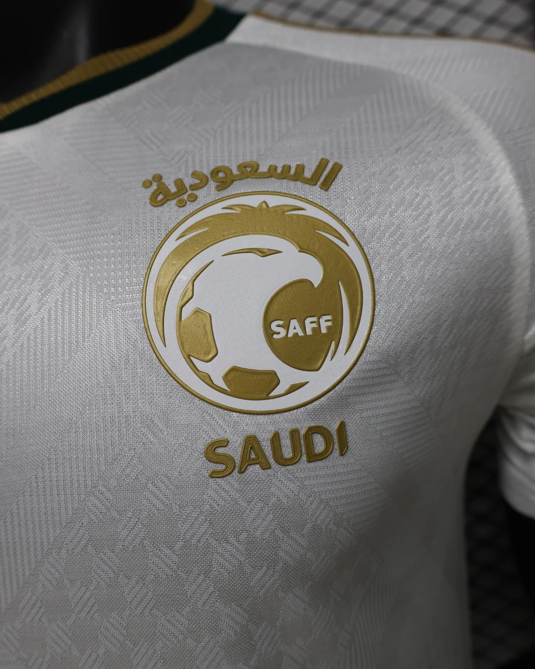 The Saudi Arabia 2026 WC Away Authentic Jersey brings a clean, premium look to the Green Falcons’ World Cup campaign. Designed by adidas, it features a predominantly white base with elegant dark green and gold accents, plus subtle woven detailing that gives the shirt a refined, modern finish. Built for match-level performance, the authentic version uses adidas Climacool+ technology for a cool, dry feel and a slim fit that delivers a streamlined silhouette.