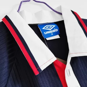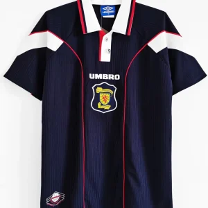 Celebrate the proud heritage of Scottish football with the Scotland 1997 Home Jersey, an official Umbro kit worn during a memorable period in the late 1990s. This iconic jersey features the traditional dark blue base complemented by subtle white and red accenting, staying true to Scotland’s classic national colors.