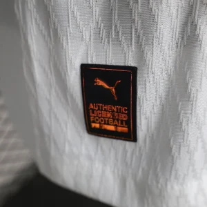 Senegal’s 2025 Home Authentic Jersey from Puma celebrates the Lions of Teranga’s 2021 AFCON triumph, powering their title defense through World Cup qualifiers and continental competitions with stars like Sadio Mané, Nicolas Jackson, Pape Matar Sarr, and Kalidou Koulibaly. The classic white base features a striking flag-inspired green-yellow-red contrast stripe across the chest, jacquard fabric on front/back/sleeves for premium texture, Senegal crest with golden star on left chest honoring their Africa Cup victory, Puma cat logo opposite, and ribbed crew neck collar.