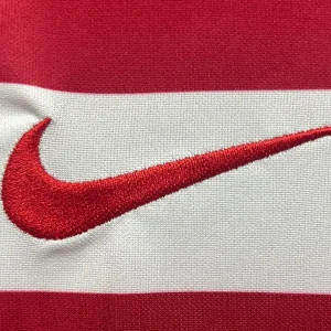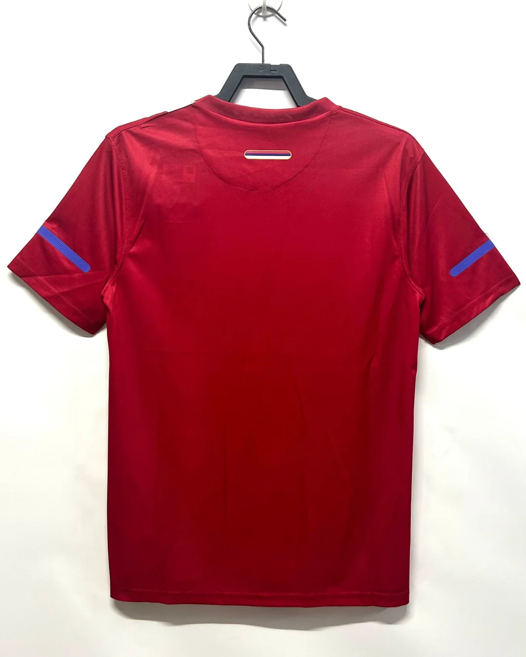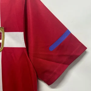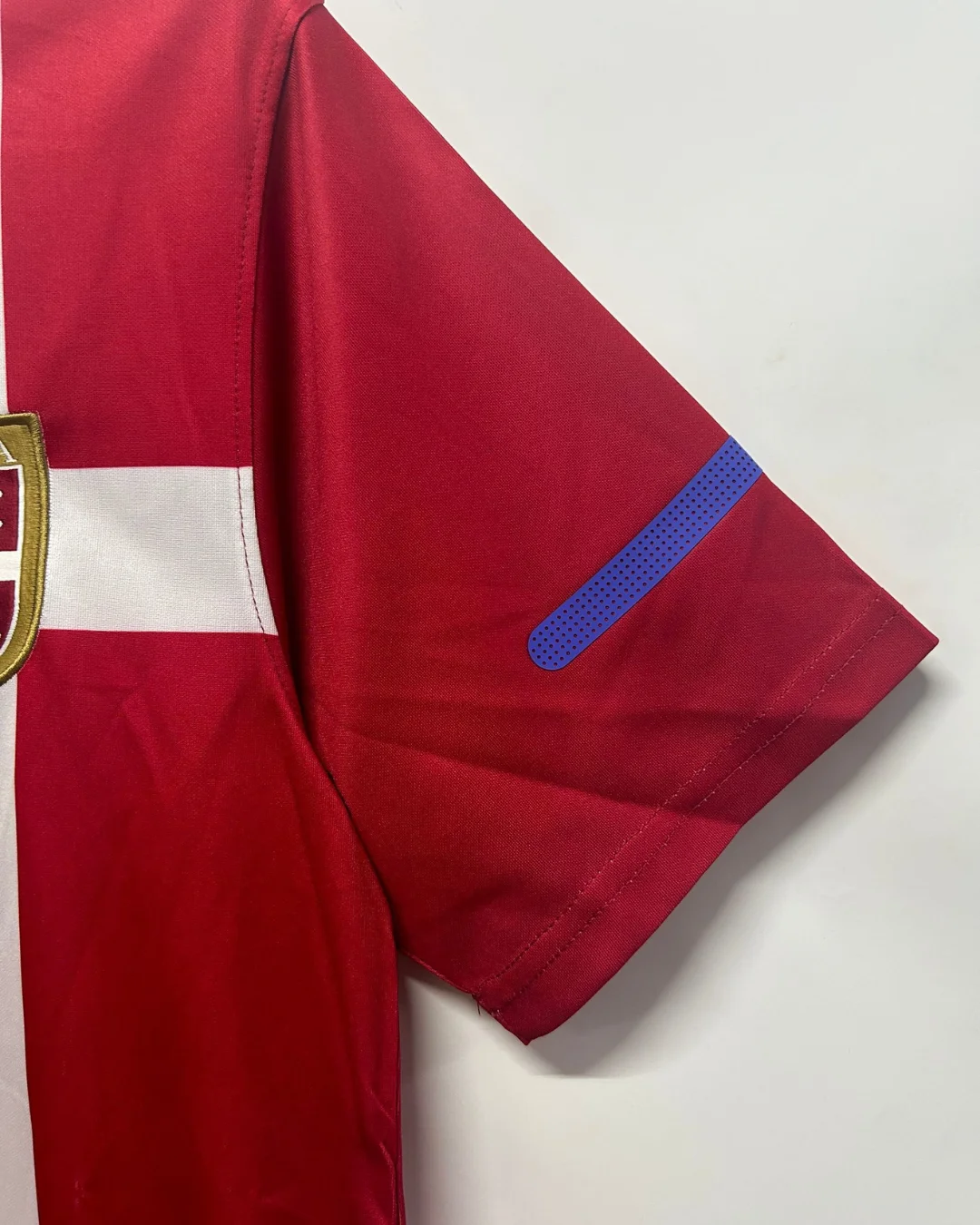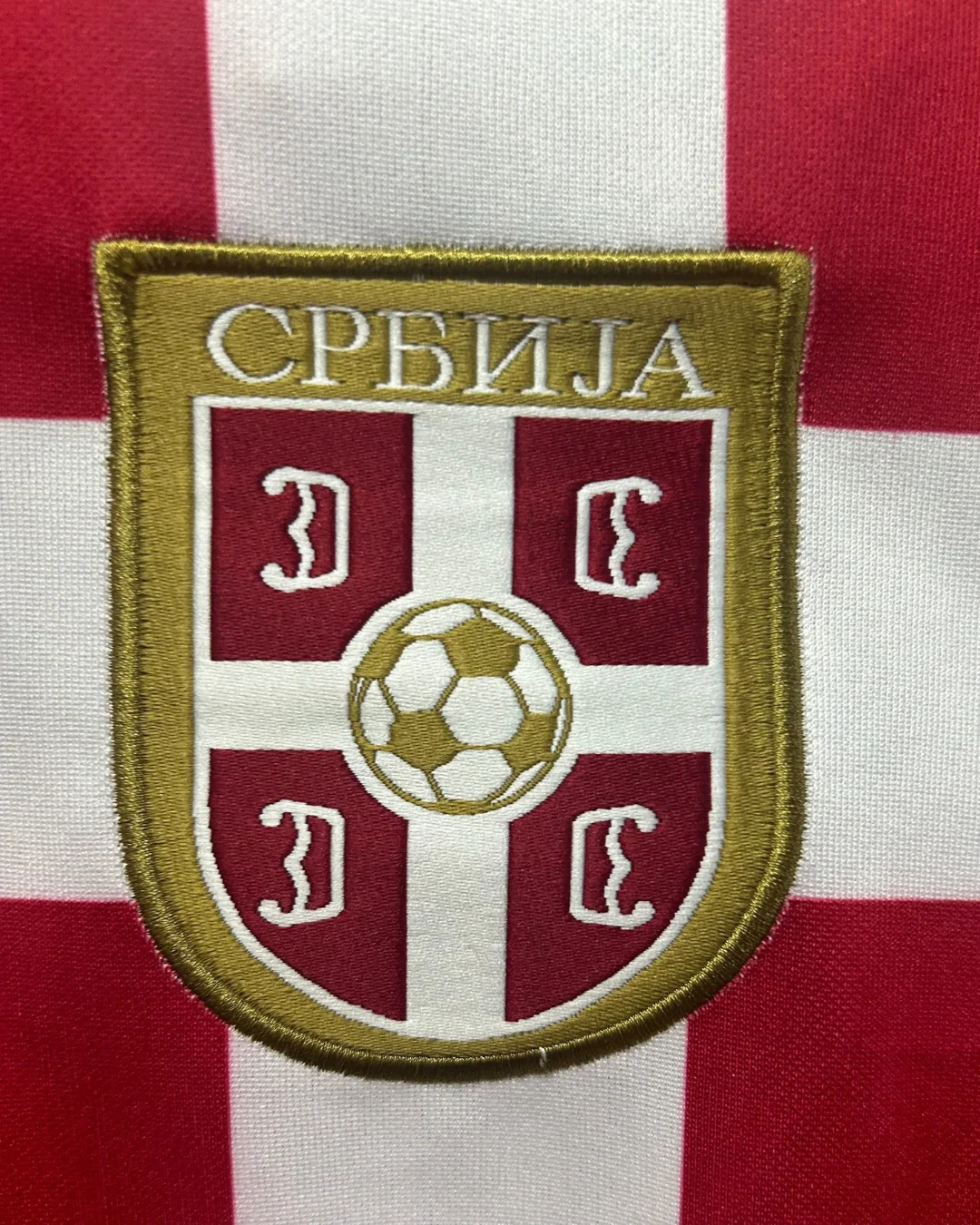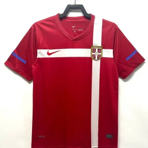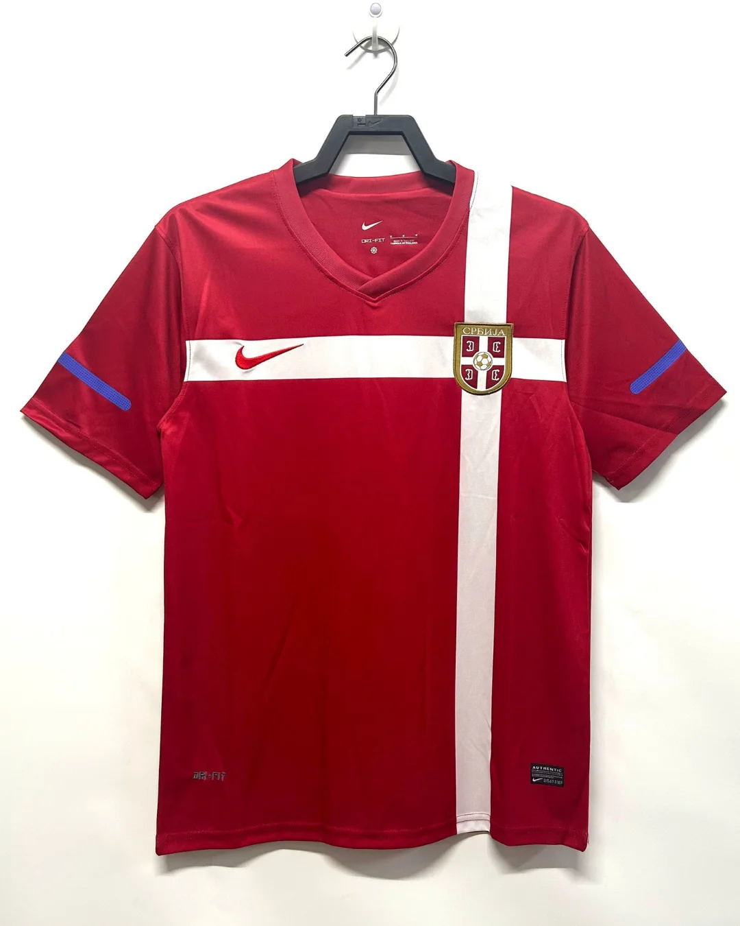 Step into the 2010 World Cup with the Serbia 2010 Home Jersey, proudly worn by the Balkan side at the tournament in South Africa under manager Radomir Antić. Crafted by Nike, this home shirt carries the classic Serbian red base that echoes the first band of the national flag, giving the jersey an instantly recognizable patriotic look. The design is marked by a prominent white cross on the front, symbolizing the Serbian Orthodox cross, with a white horizontal chest band running across the shirt and a vertical stripe down the left side, intersecting to form a clean, bold cross‑shaped layout that stands out on the pitch.
