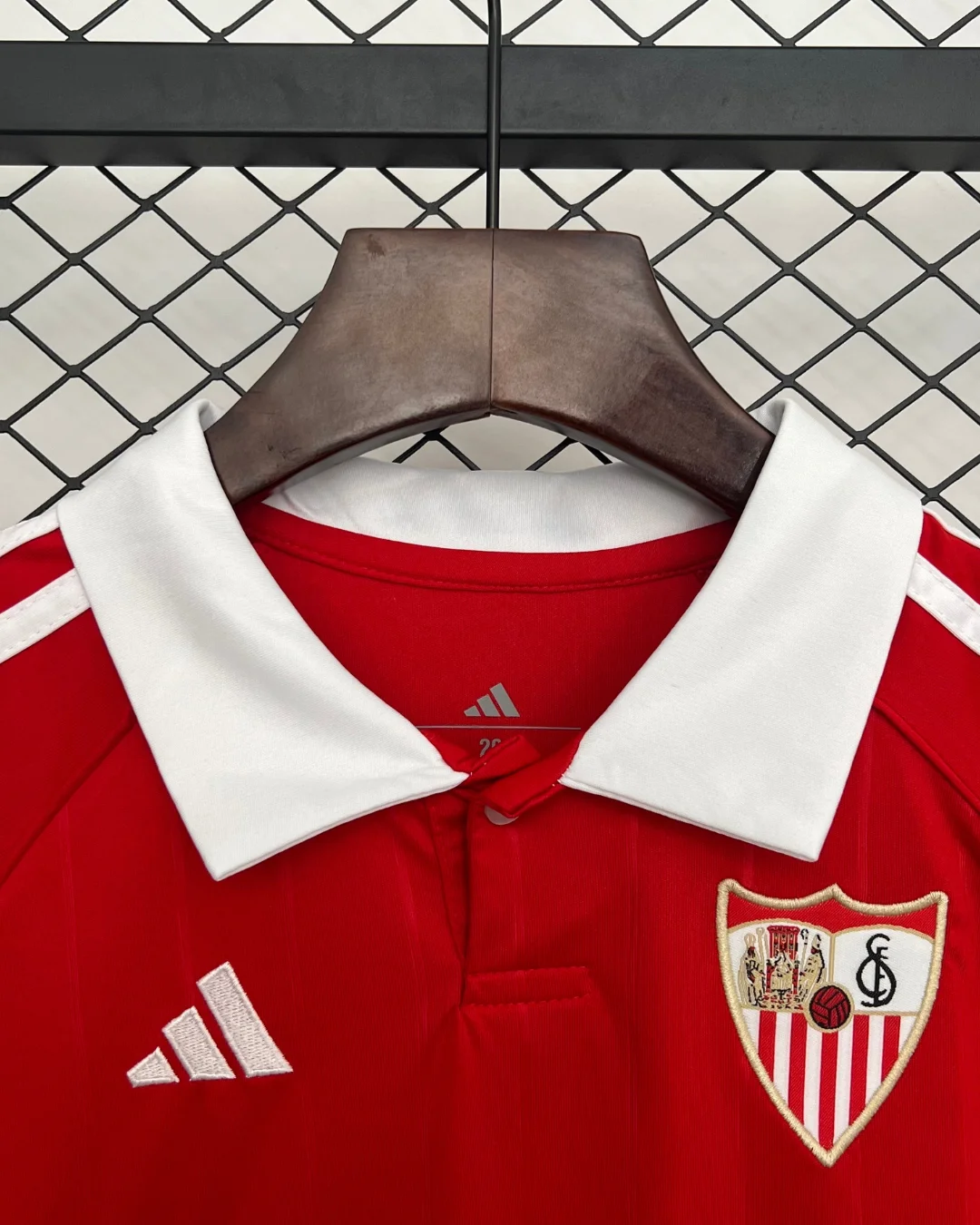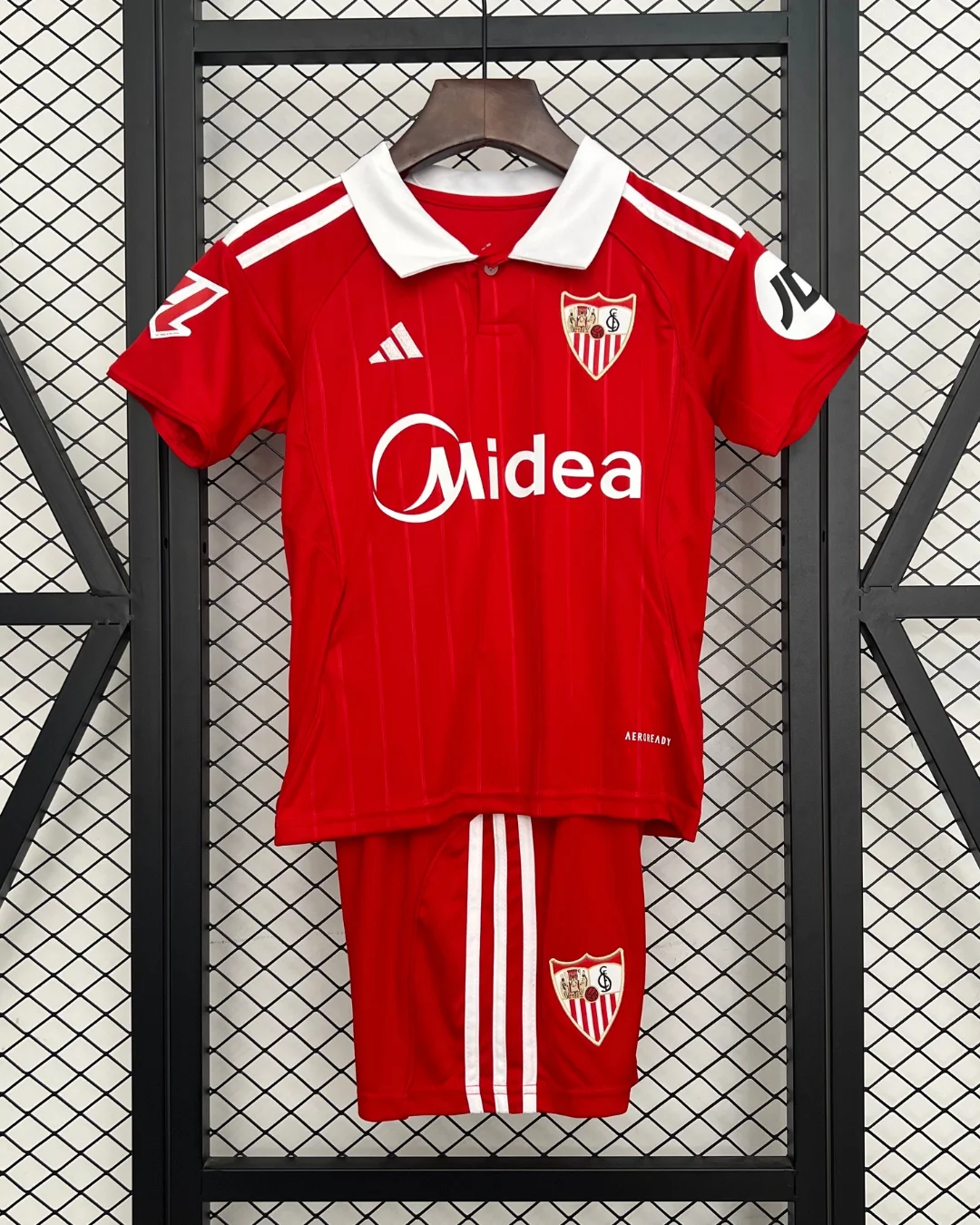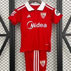 Get your little fans ready to support Sevilla FC with the adidas Sevilla FC Kids 25/26 Away Kit, blending classic elegance with contemporary comfort tailored for young supporters. The kit features a striking red base adorned with subtle white vertical pinstripes, recalling the iconic styles from Sevilla’s 1970s and 80s kits, the era when adidas first partnered with the club. White accents highlight the shoulders, collar, and brand logos, creating a sharp and timeless look that honors the club’s heritage.