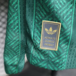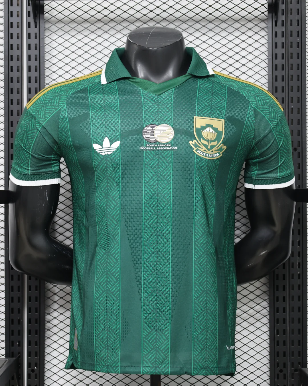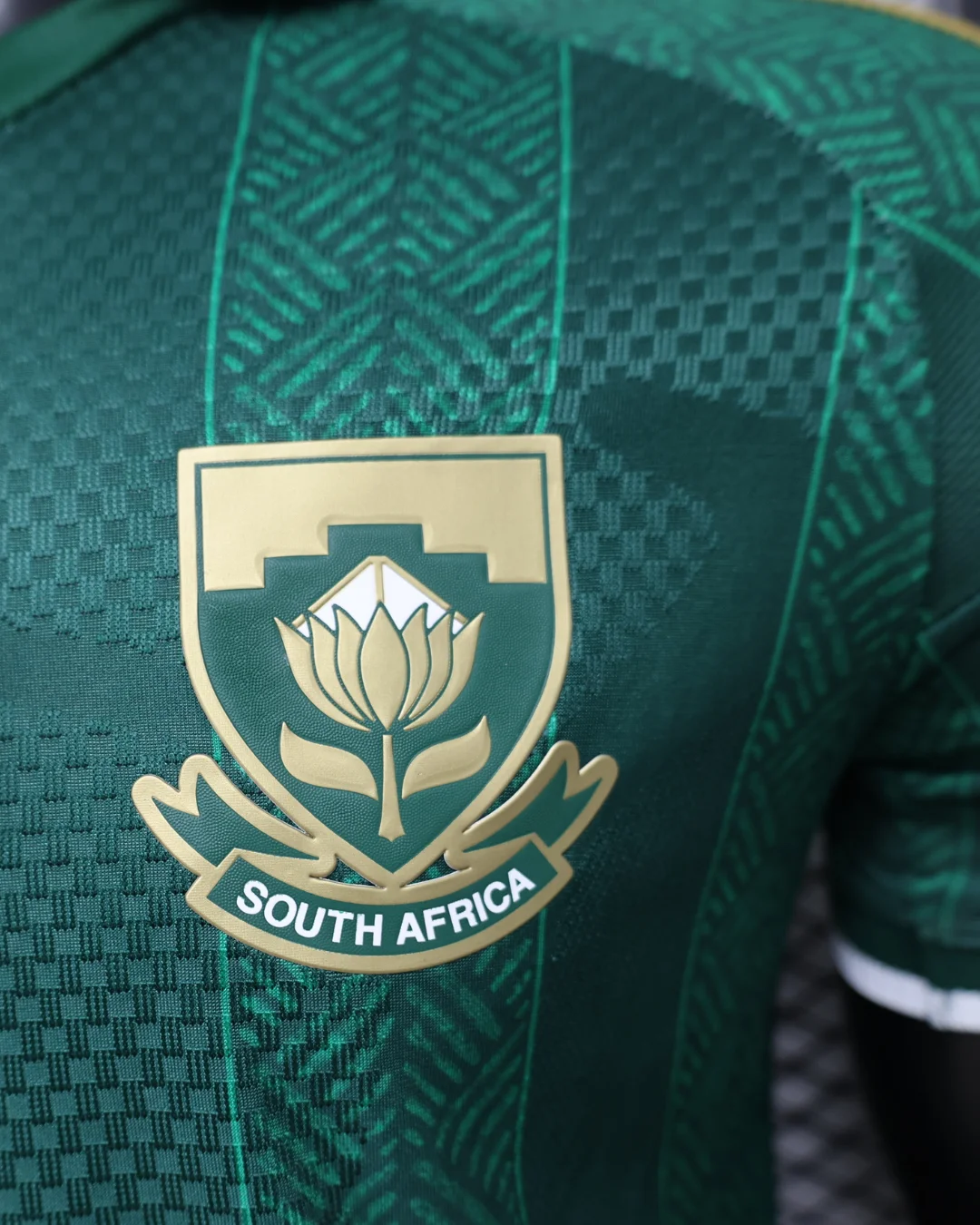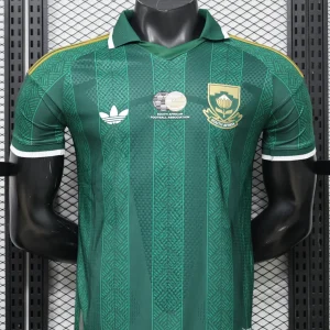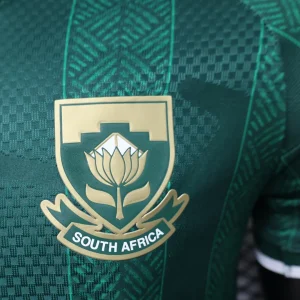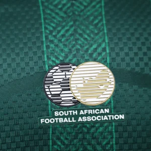 The South Africa 2026 WC Away Authentic Jersey brings a classic Bafana Bafana look in deep green, finished with white and gold accents for a clean, heritage-inspired World Cup appearance. It takes design cues from South Africa’s memorable 2010 kit, pairing a traditional fold-over polo collar with a thin white stripe, thick white sleeve cuffs, a white Trefoil logo, and the national crest for a premium retro feel.
