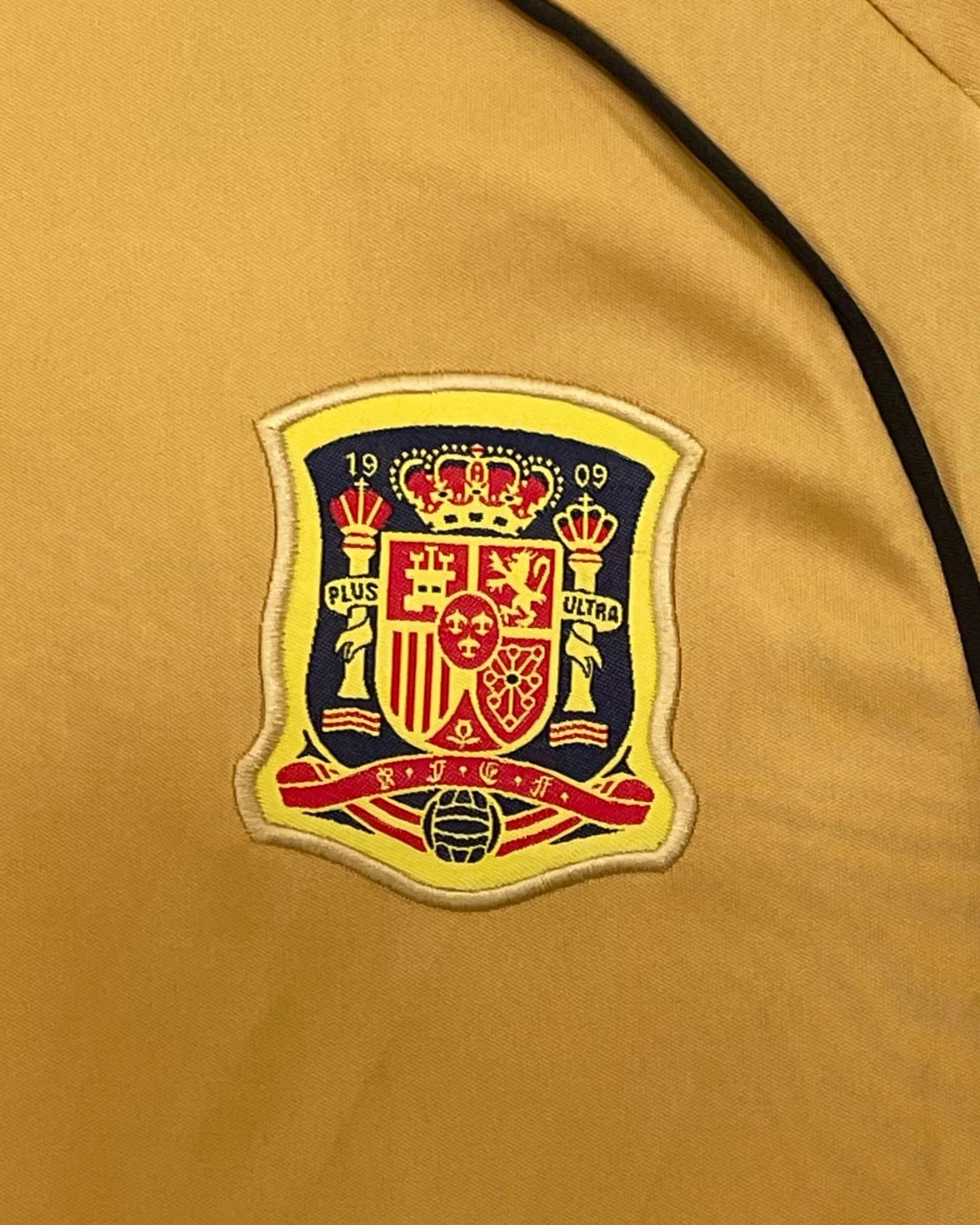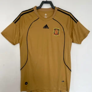 Spain’s iconic 2008 Away Jersey from Adidas launched their golden era, powering Euro 2008 triumph and World Cup 2010 qualification under Luis Aragonés, worn by Fernando Torres, David Villa, Xavi, Andrés Iniesta, and Iker Casillas during their revolutionary tiki-taka dominance. The vibrant yellow base with navy blue piping features the embroidered Spanish Football Federation crest on left chest, crew neck collar, and clean tournament design, quintessential La Roja elegance marking their first major trophy in 44 years.