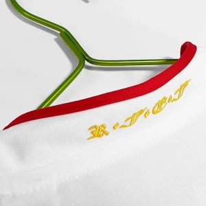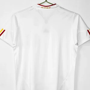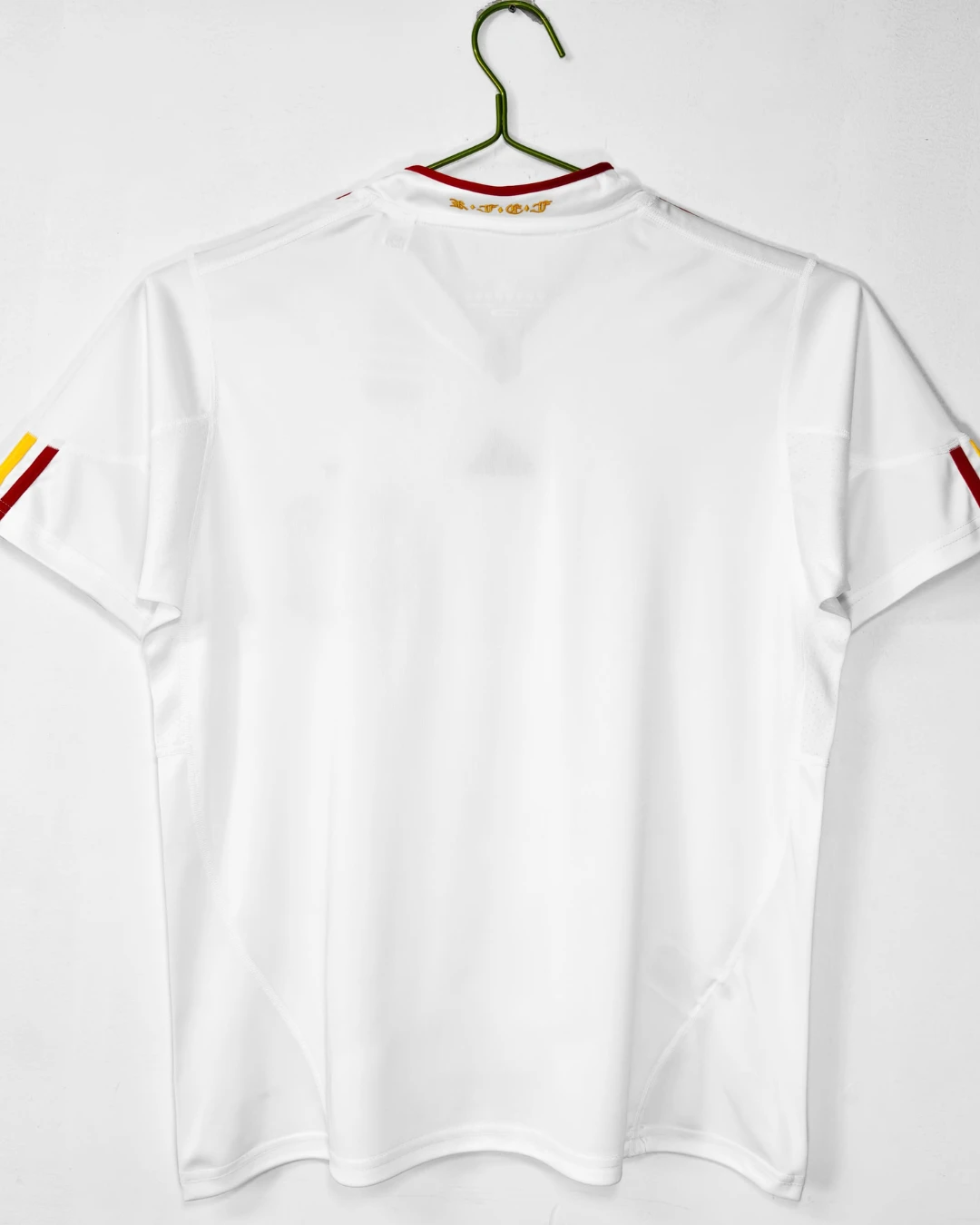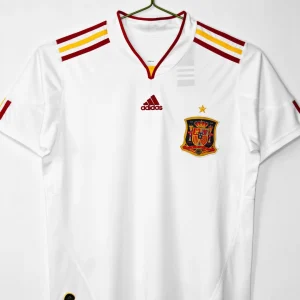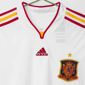 Spain’s 2011 Away Jersey from Adidas celebrated their reigning World Cup champions status during Euro 2012 qualifiers, featuring a clean white base with bold red and yellow adidas stripes extending from shoulders to cuffs, distinctive V-neck collar with subtle red trim piping, ClimaCool moisture-wicking fabric with mesh side panels for ventilation, worn as La Roja continued their golden era dominance. Perfect for young La Roja supporters, this retro replica uses lightweight 100% polyester tricot construction for breathability, embroidered RFEF crest on left chest, short sleeves with elastic cuffs and regular relaxed fit.