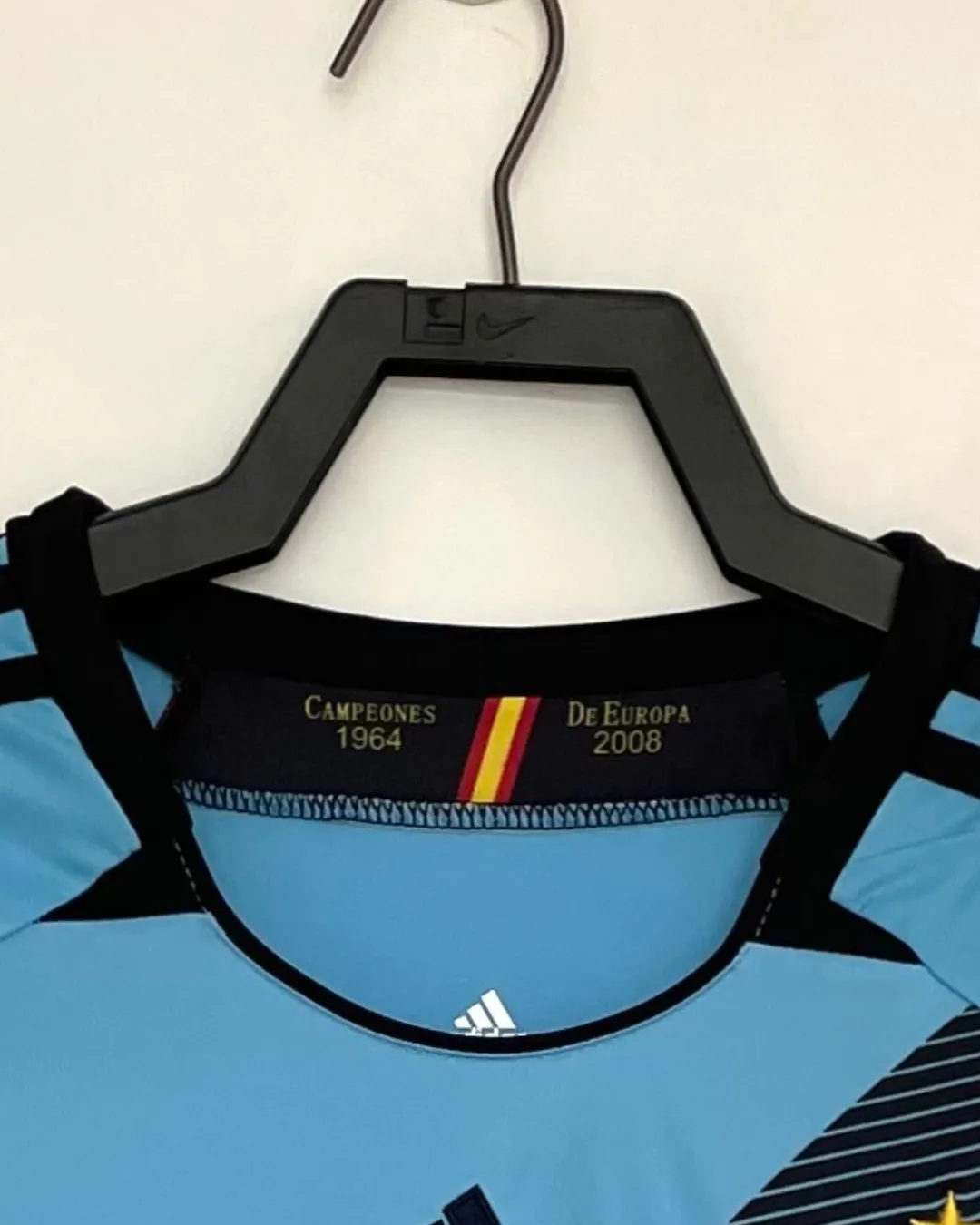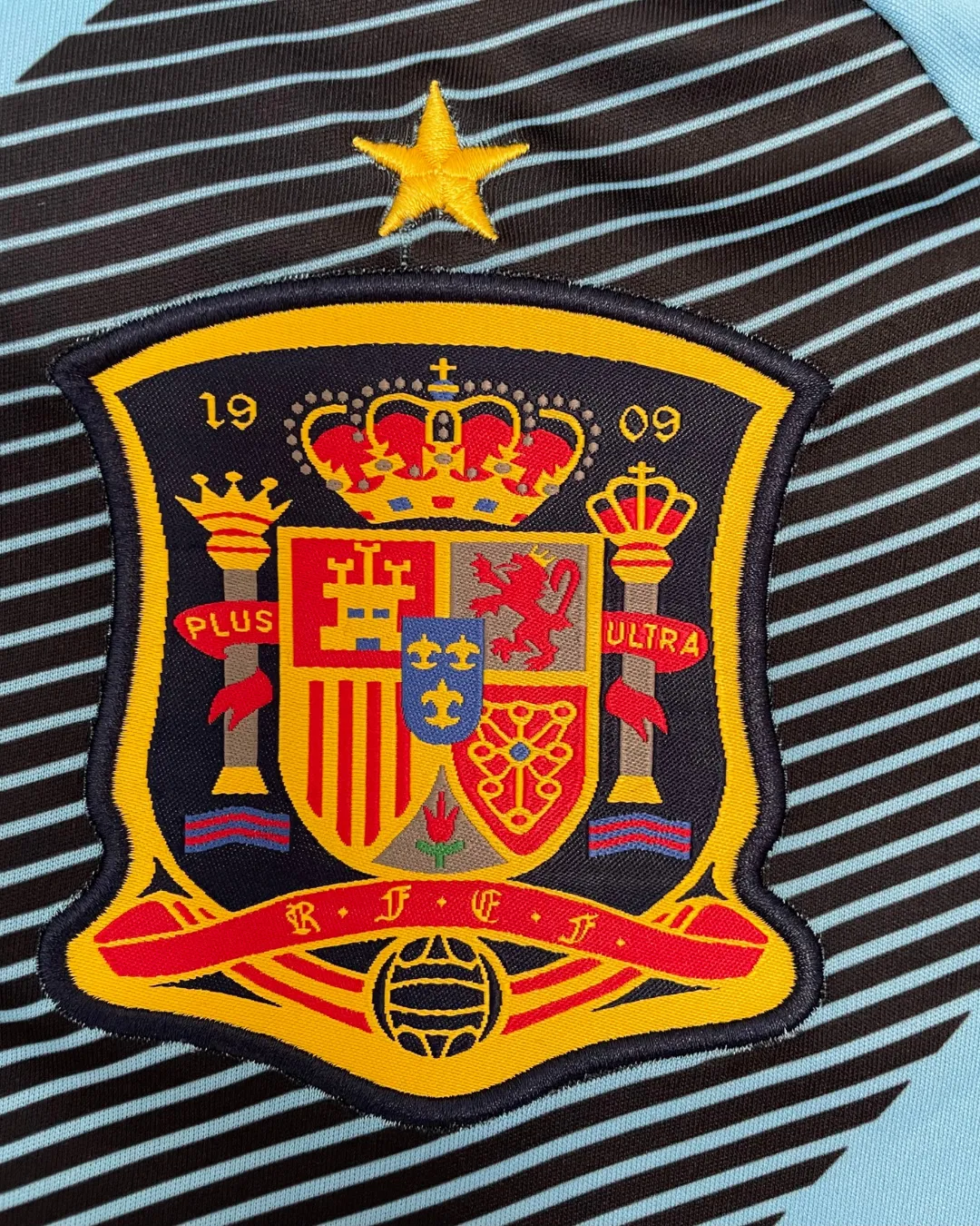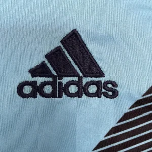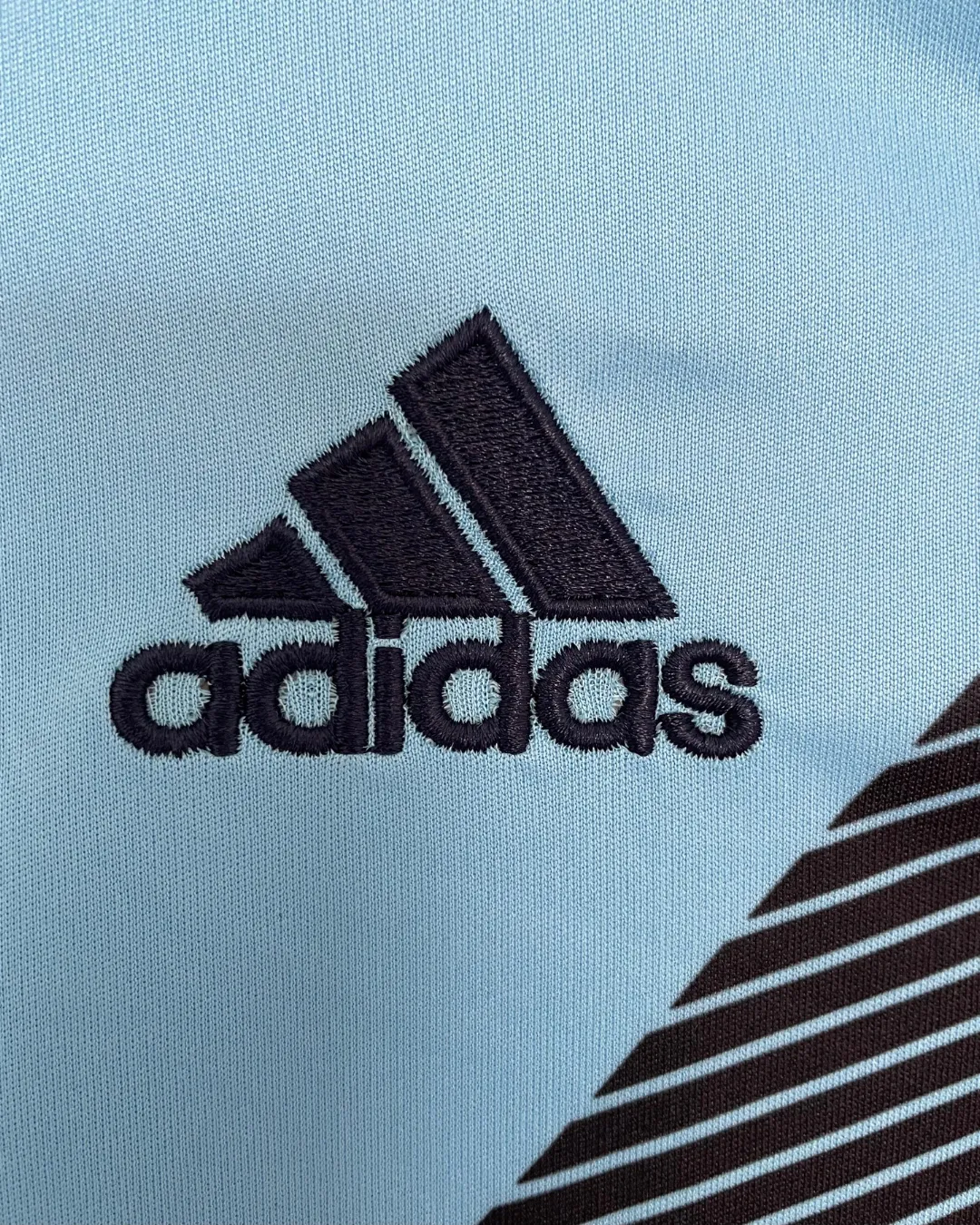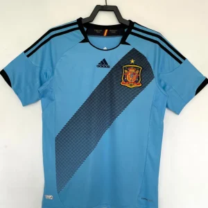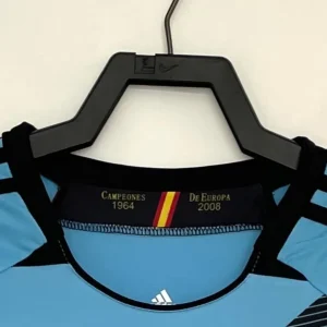 Dominate Europe as La Roja did with Spain’s iconic 2012 Away Jersey from Adidas, worn during their historic Euro 2012 triumph and the beginning of their golden era. The striking light blue base features a distinctive fading black sash diagonally across the chest, paired with a ribbed crew neck collar bearing an inner gold bar celebrating Spain’s three consecutive major tournament wins, and the embroidered RFEF crest on the left chest opposite the Adidas trefoil logo. Constructed from 100% polyester tricot with ventilated Climacool technology, it ensures superior moisture-wicking and breathability for match performance.