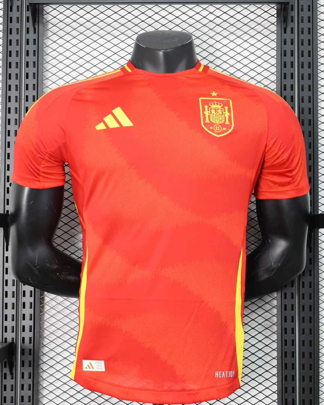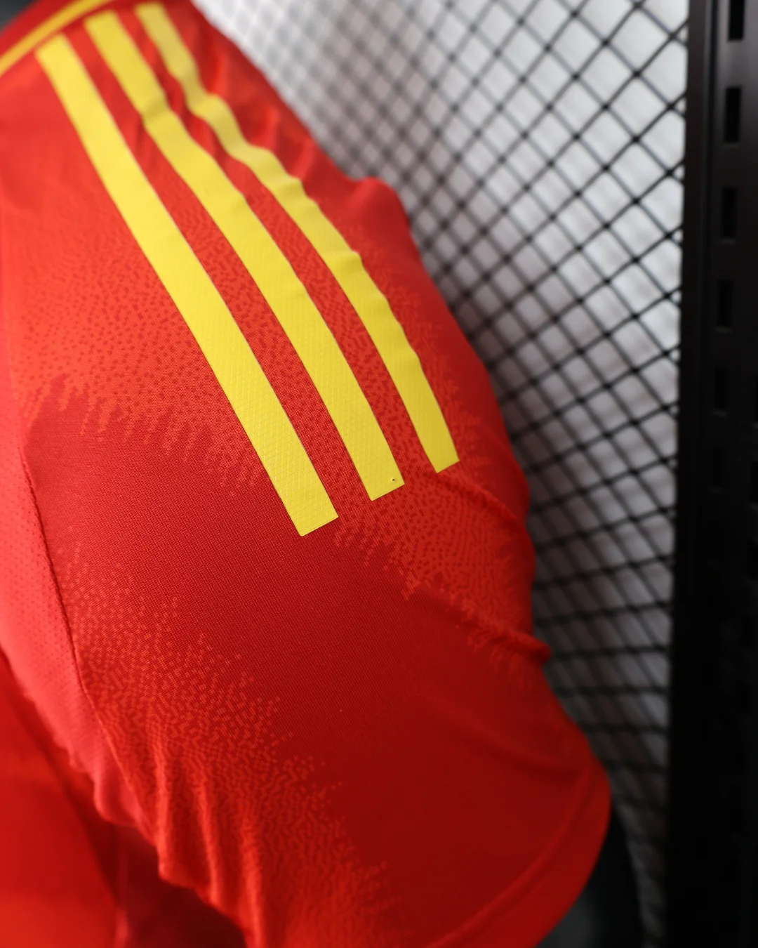 Celebrate the fiery spirit of La Furia Roja with the Spain 2024/25 Home Authentic Jersey, an official Adidas kit engineered for peak performance and fierce national pride. This jersey features a striking “Better Scarlet” red base embellished with a subtle tonal wave pattern that symbolizes the rhythmical movement of ocean waves, adding dynamic texture across the front and back.