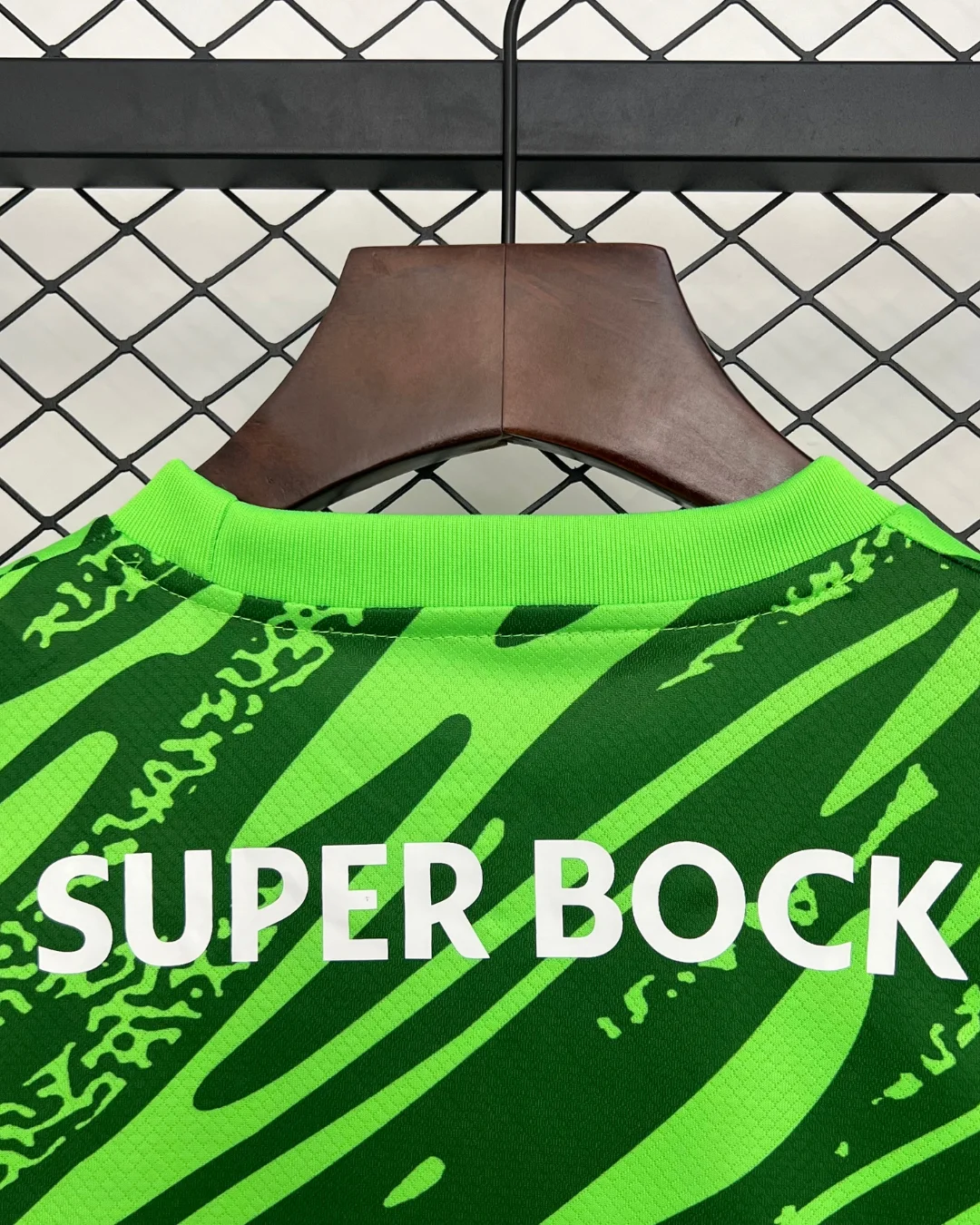Prepare young goalkeepers for action with the Nike Sporting CP Kids 25/26 Goalkeeper Green Kit, designed to deliver vibrant style, maximum comfort, and high-performance features suitable for aspiring keepers. This kit features a striking green base inspired by Sporting CP’s traditional colors, enhanced with sleek graphic details and modern design touches that reflect agility and strength. This jersey showcases a round neck collar for a contemporary look, with subtle white accents adding contrast and flair.