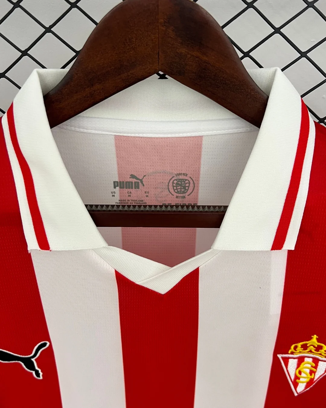 • Embroidered club crest, Puma logo, and Siroko sponsor branding