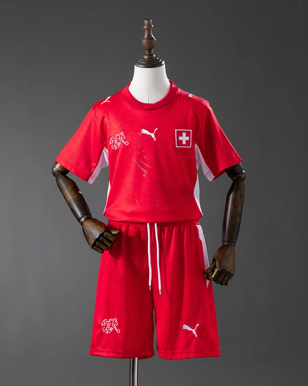 The Switzerland Kids 2026 WC Home jersey comes in the nation’s classic red with white details, featuring a soft all-over graphic inspired by the Swiss passport, Helvetia, and geographic references across the shirt. It gives young fans a clean, premium look that celebrates Swiss identity while keeping the design modern and performance-ready. Built for comfort and everyday wear, this PUMA youth jersey uses dryCELL sweat-wicking technology and 100% recycled polyester to help keep kids cool and dry during play.