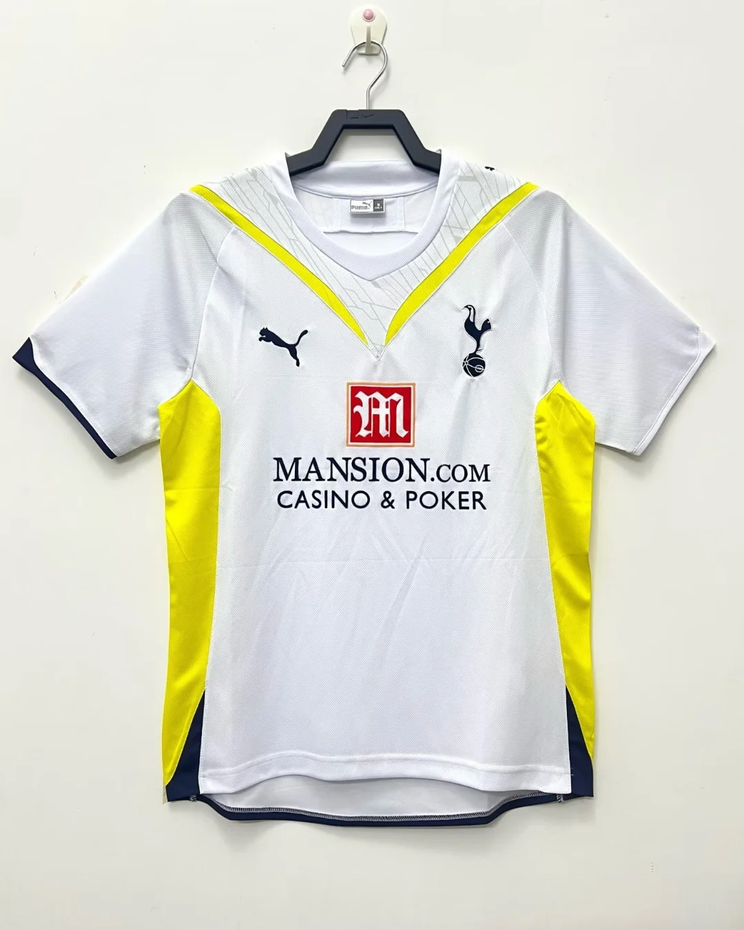 Relive the 2009/10 Spurs season with the Tottenham Hotspur 09/10 Home Jersey, a distinctive Puma shirt from the campaign that saw Tottenham secure a historic return to the UEFA Champions League by finishing fourth in the Premier League. The design keeps the club’s traditional white base but adds bold yellow detailing with navy accents, creating one of the most talked-about Tottenham home kits of the modern era.