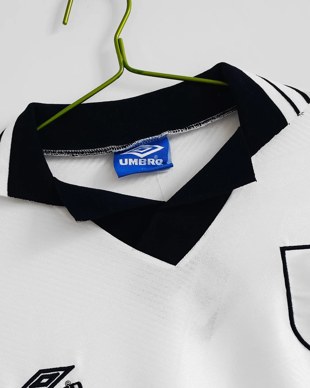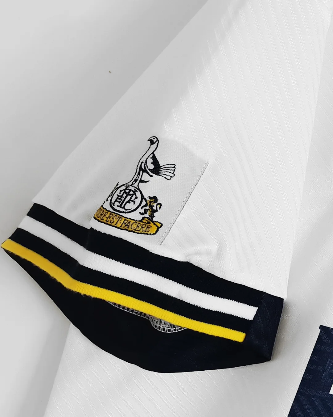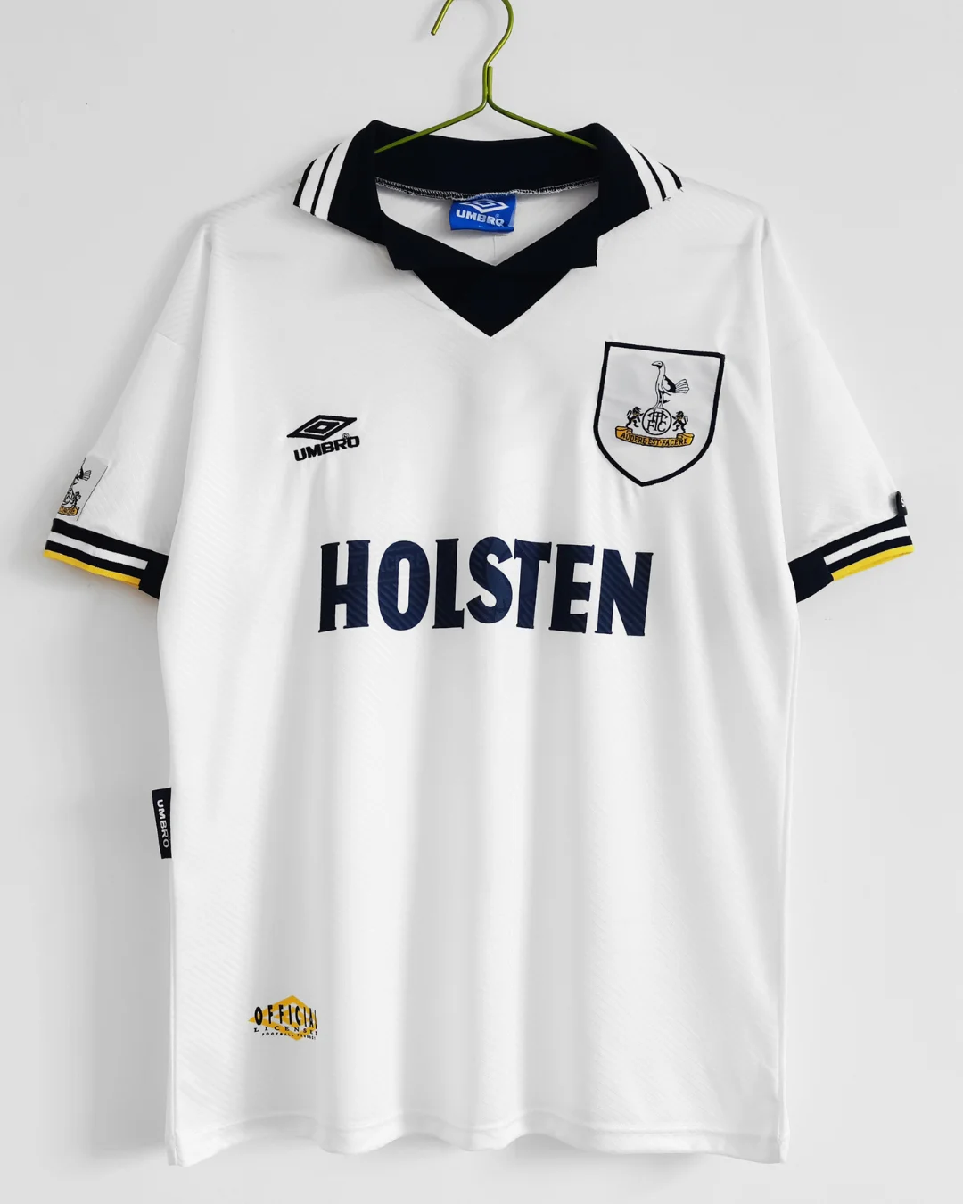 Celebrate the classic style and heritage of Tottenham Hotspur with the 1993/95 Home Jersey, a timeless piece from an exciting era in Spurs history. Manufactured by Umbro, this iconic jersey sports the traditional white base with navy blue accents, reflecting the club’s proud colors and deep footballing roots.