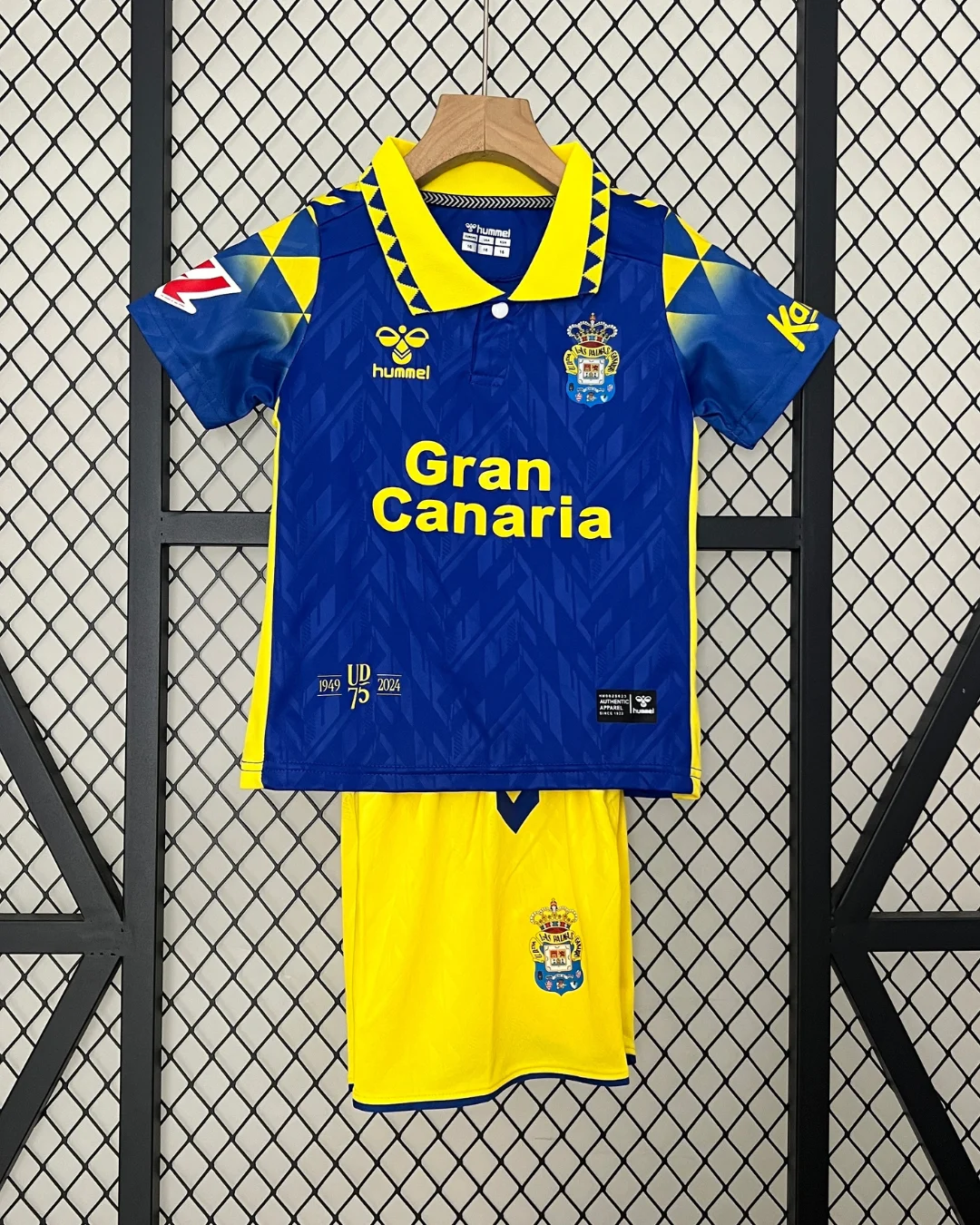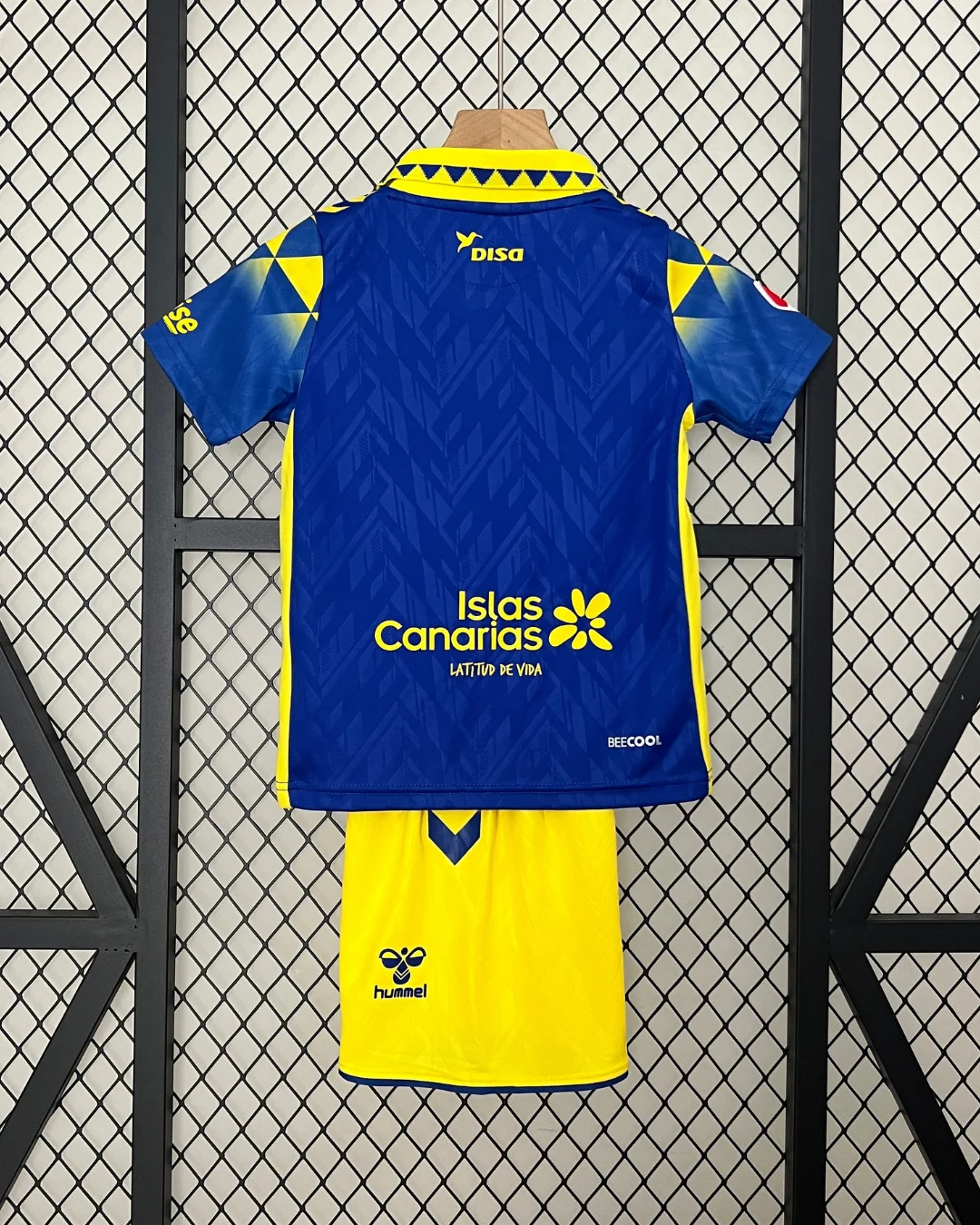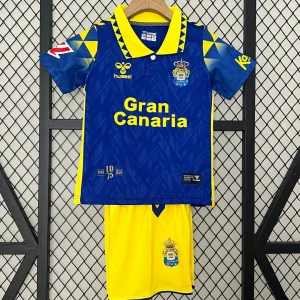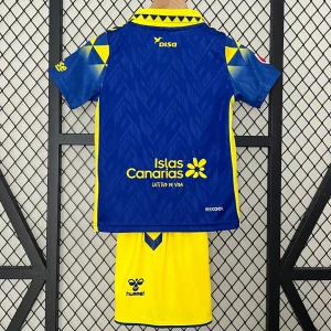 The Hummel UD Las Palmas Kids 24/25 Away Kit celebrates the island’s stunning sunsets with a true blue base enhanced by vibrant yellow side panels and subtle graphic patterns on sleeves and collar, capturing Gran Canaria’s coastal beauty for young pizarras fans.