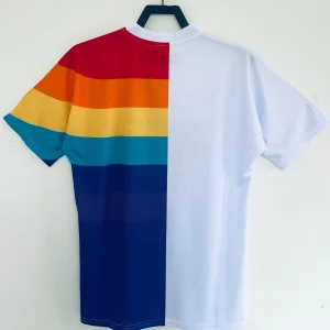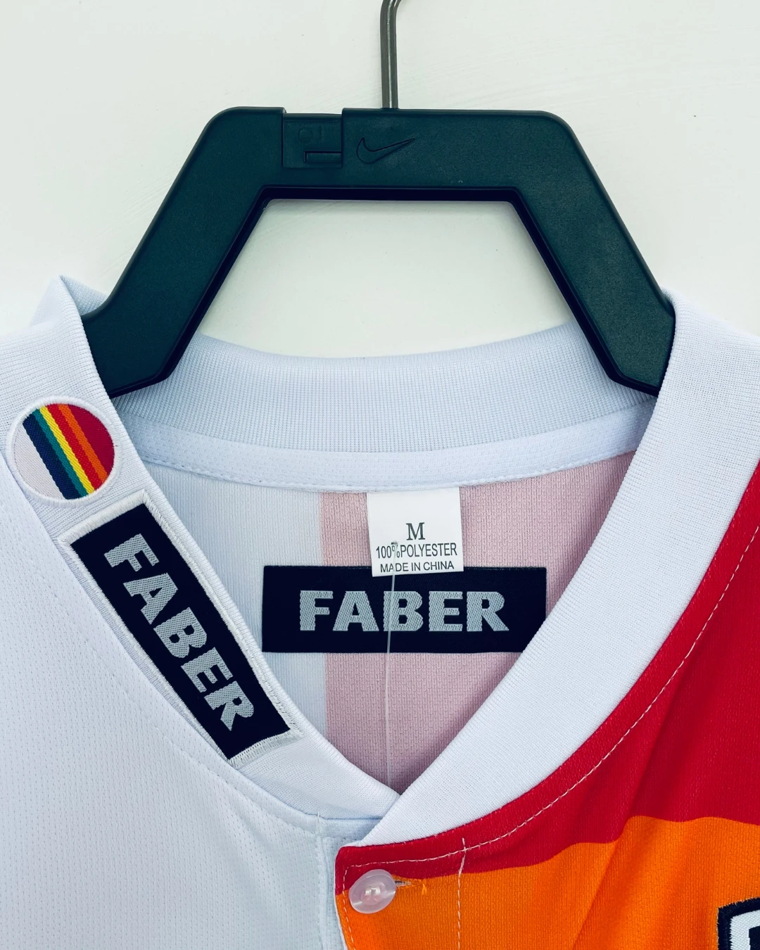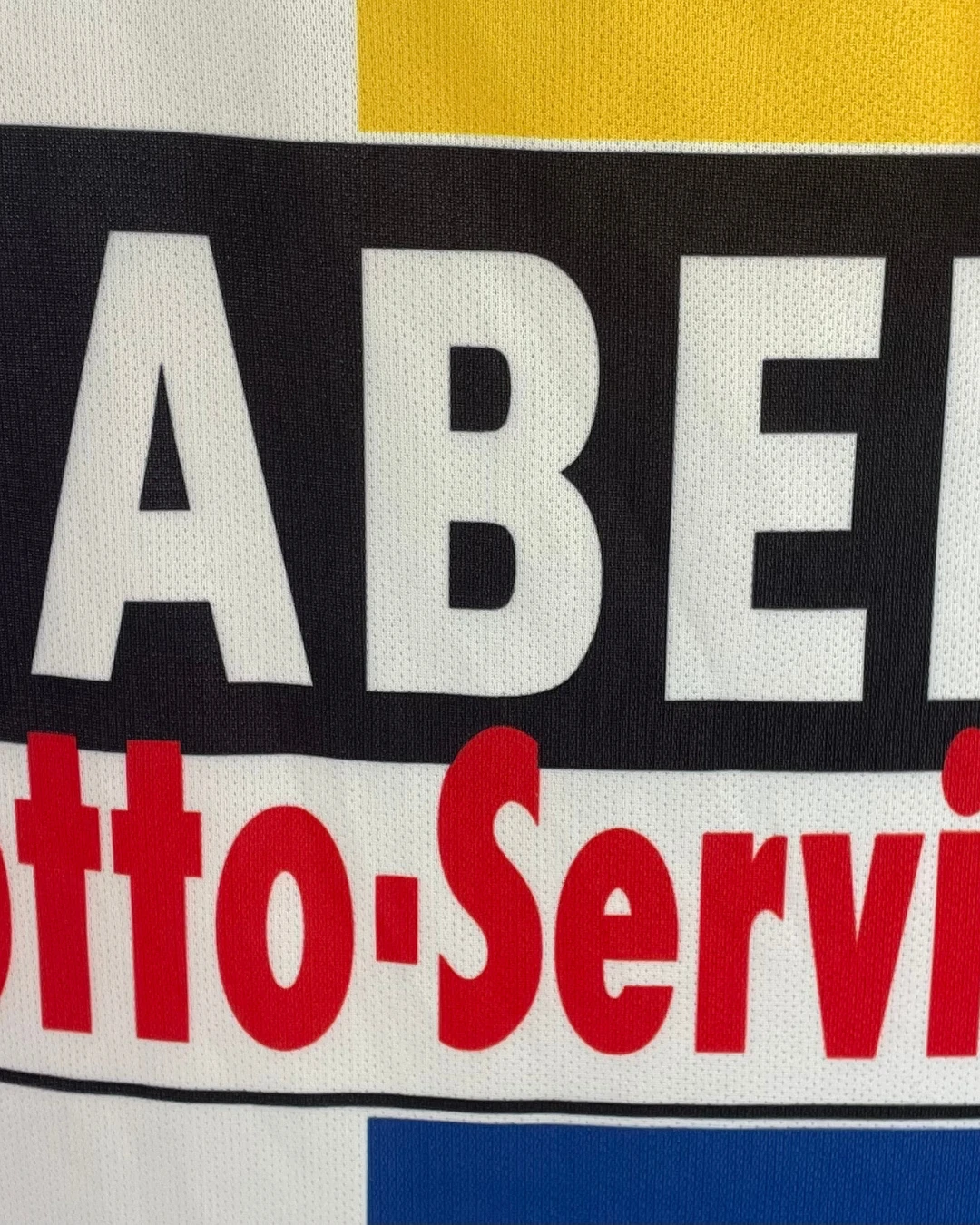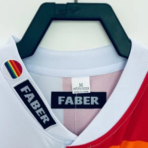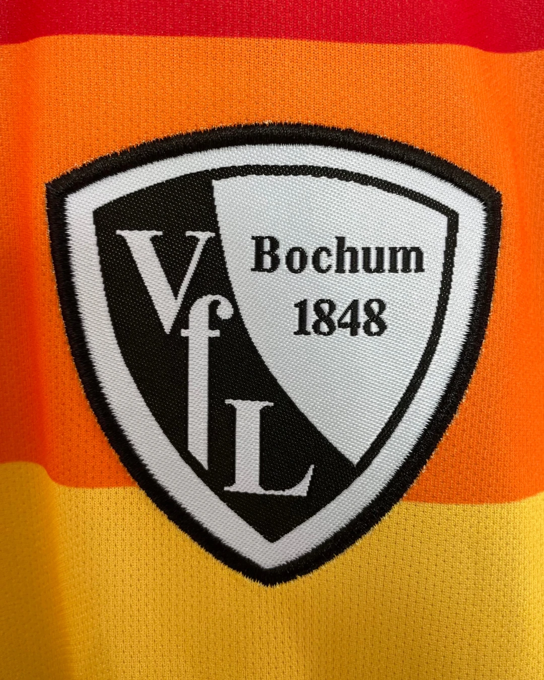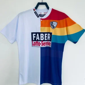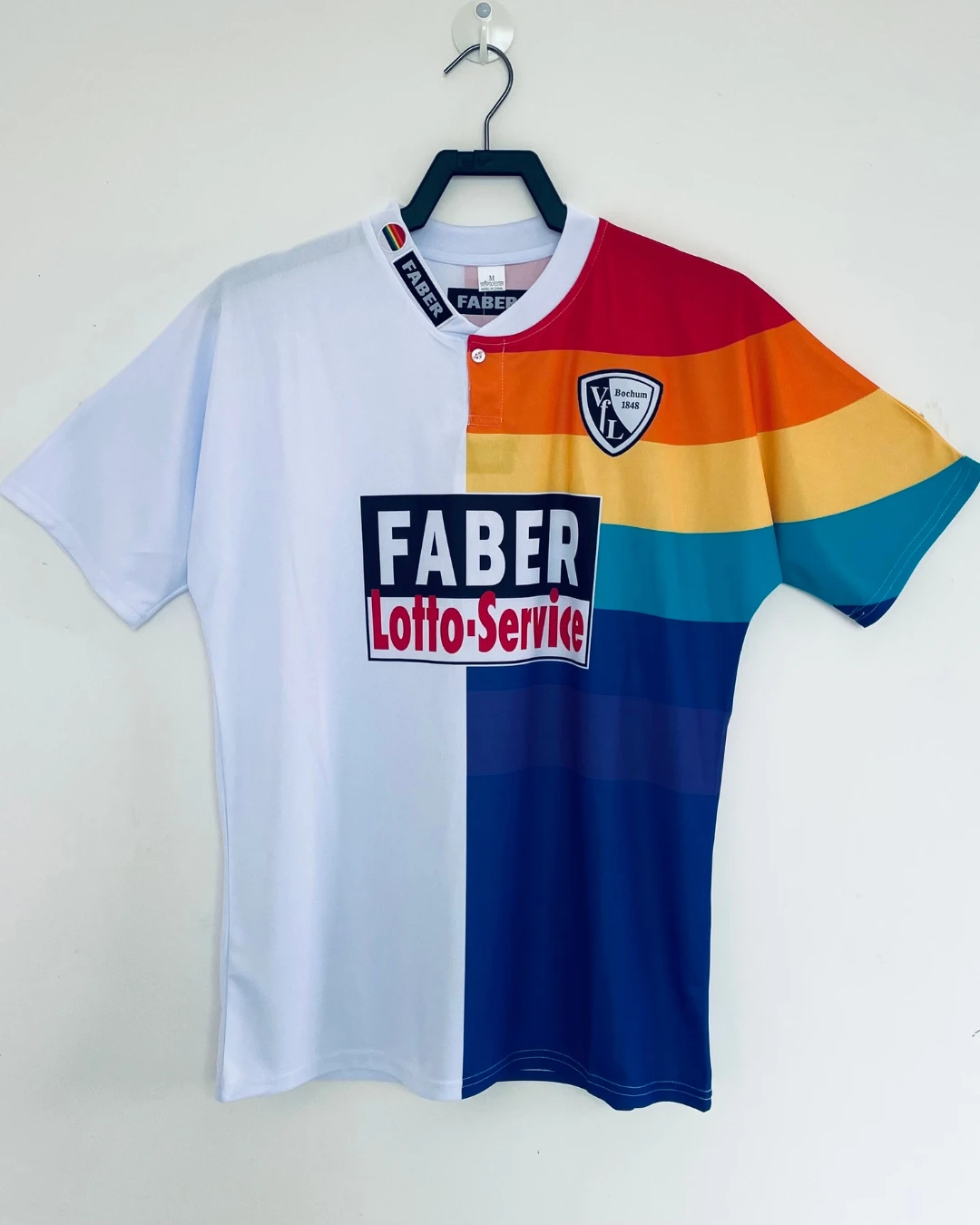 VfL Bochum’s distinctive 1997/99 Away Jersey from Faber powered their UEFA Cup third round campaign and Bundesliga survival battles, worn by Roland Wohlfarth, Pepe Retamozo, and Jens Harste during the “Unabsteigbaren” era at rewirpowerSTADION. The eye-catching rainbow-colored Technicolor design and white base with Faber Lotto-Service sponsor showcases crew neck collar, embroidered VfL crest on left chest, and dynamic multi-hued pattern across the chest, ultra-rare Die Unabsteigbaren collector’s item blending Ruhrgebiet identity with late-90s cult appeal.
