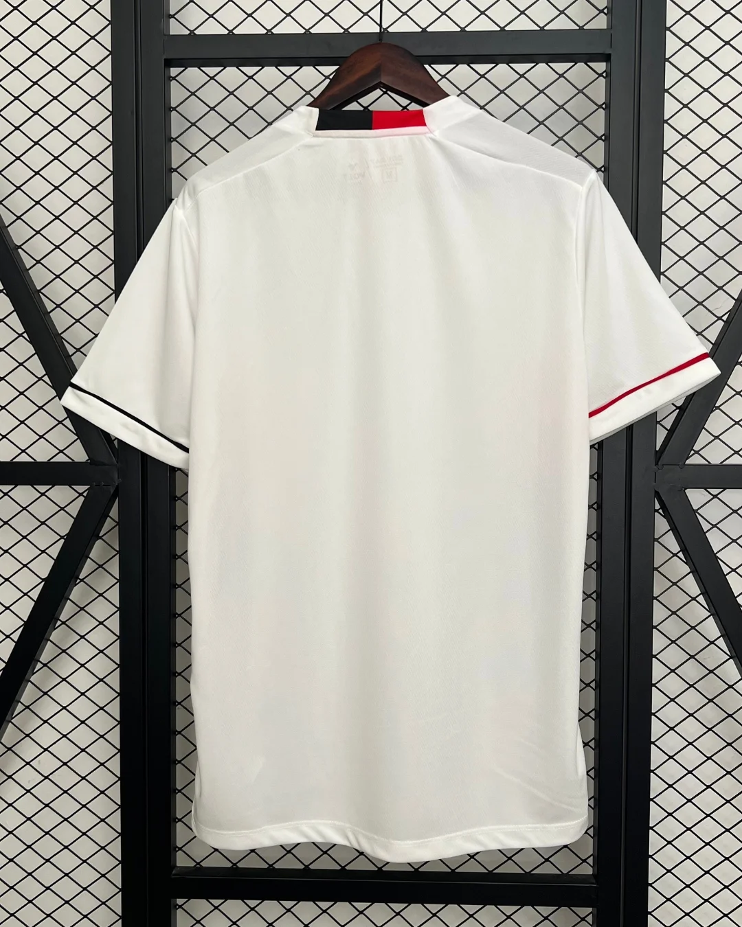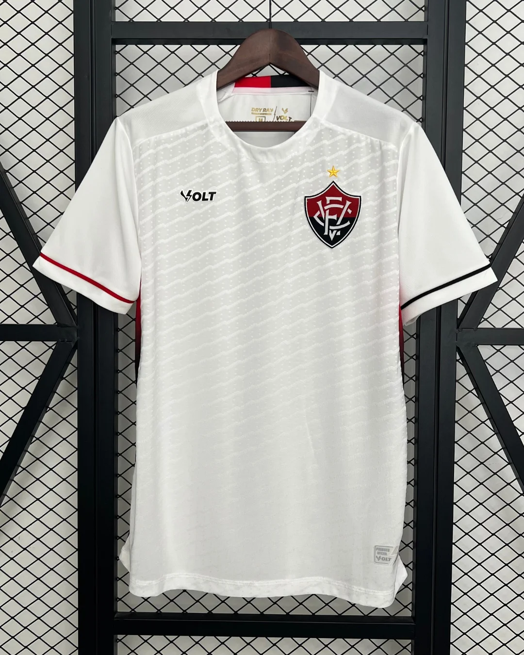 Represent Bahia’s legendary Rubro-Negro with the 2025/26 Esporte Clube Vitória Home Stadium Jersey by Volt, crafted for fans craving premium style and authentic club identity. This jersey features a crisp white base highlighted by subtle wave patterns across the chest, combining modern elegance with simplicity. The club’s iconic shield, detailed in red, black, and white with a gold star above, is embroidered on the left chest for unmistakable pride. The Volt logo sits in black on the right, confirming its authentic origin.