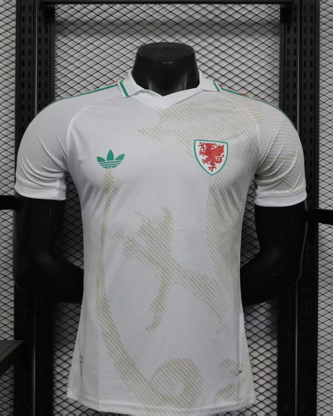 Fuel the Dragons’ fearless World Cup charge with the Wales 2026 Away Authentic Jersey from Adidas. Featuring a clean Chalk White base emblazoned with a striking golden dragon graphic inspired by Y Ddraig Aur, the nation’s ancient symbol, it incorporates green, red and green Three Stripes on shoulders, V-neck fold-over collar, and flag color accents celebrating Welsh heritage. Engineered from 100% recycled polyester with Climacool+ technology, this jersey delivers superior moisture-wicking, breathability, and a slim authentic match fit for elite performance matching what the pros wear.