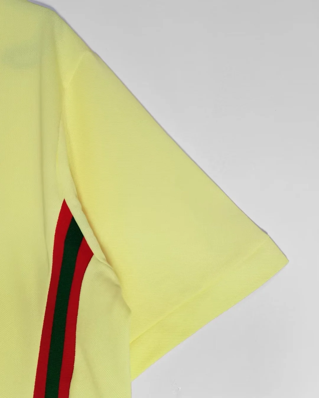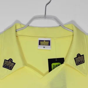 Celebrate a classic period in Welsh football history with the Wales 1976-79 Away Jersey. This vintage kit is known for its bold yellow base color with red and black accents, reflecting a vibrant and unique design that stood out on the international stage during the late 1970s.