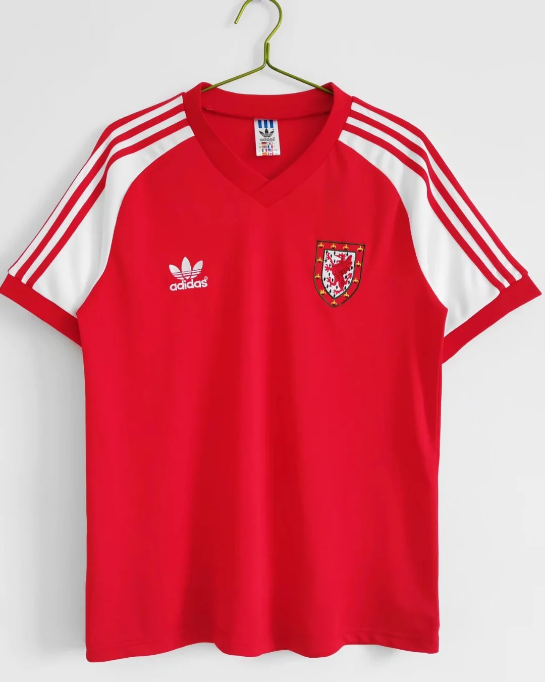 Celebrate the heart and history of Welsh football with the classic Wales 1980/82 Home Jersey, a nostalgic kit from the early 1980s worn during pivotal European and World Cup qualifying campaigns. This iconic jersey features a vibrant red base highlighted by the legendary Adidas three-stripe design down the sleeves in white, symbolizing the pride of the Welsh Dragons.