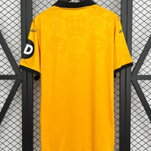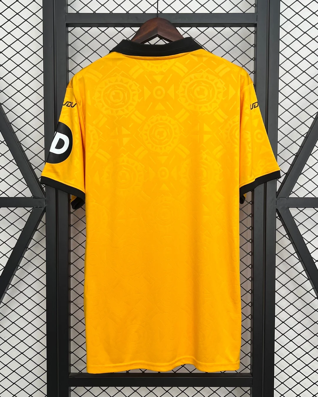 Celebrate the rich heritage of Wolverhampton Wanderers with the Sudu 2025/26 Home Stadium Jersey, a stunning homage to the club’s historical roots and iconic style. The design is inspired by the Molineux Pleasure Grounds, the site’s original use before becoming the club’s home, integrating ornamental terraces and park motifs into the fabric through a subtle debossed print. Featuring the club’s iconic old gold base, this jersey adds a fresh dimension with the intricate Pleasure Grounds-inspired detailing, making it visually unique while honoring tradition.